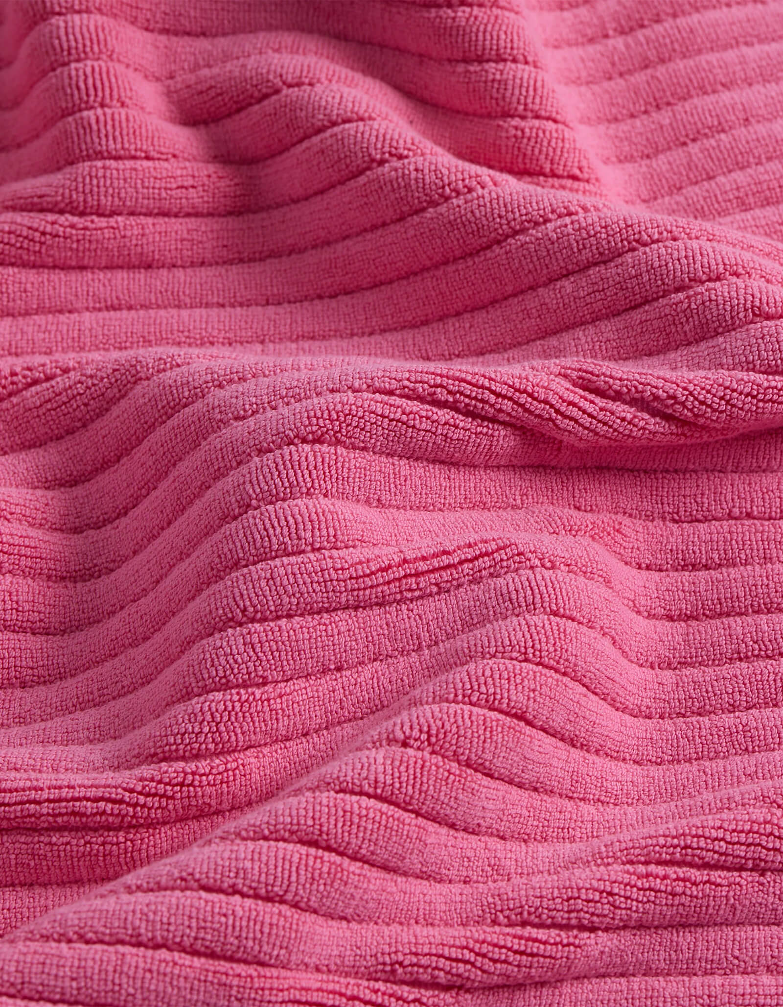 Plush ribbing texture and meticulous attention to detail provide ultimate comfort and absorbency. Made with 100% premium cotton, sourced from top-tier suppliers and mills. Our 1200gsm thick loop pile ensures quick moisture absorption, leaving you feeling dry and refreshed.