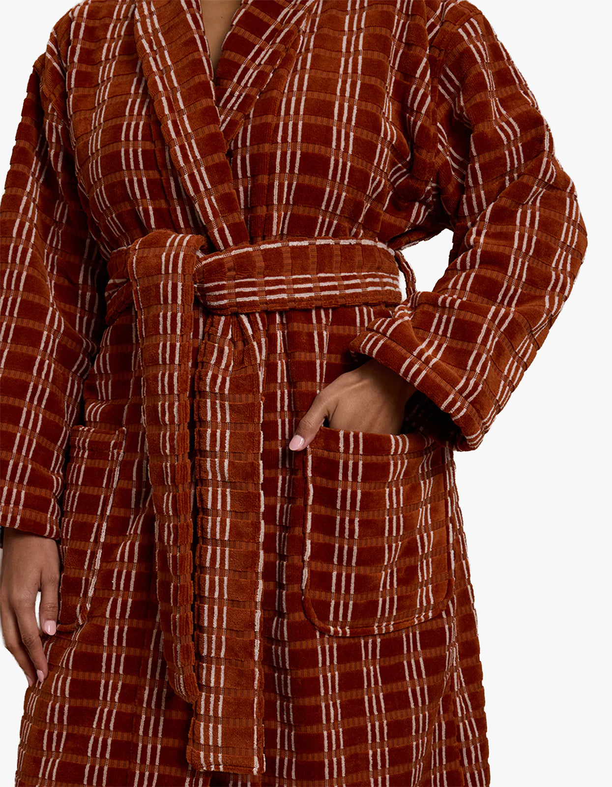 Level up your lounge game with this terracotta robe from Hommey.
