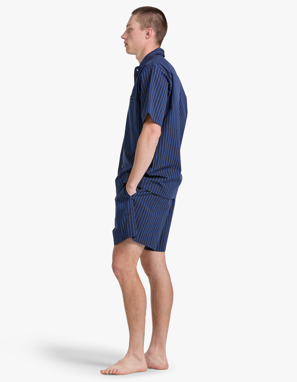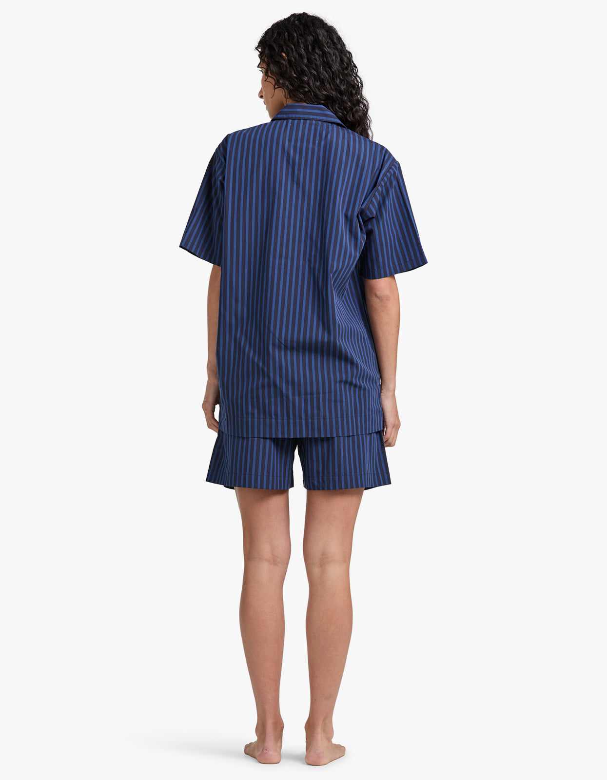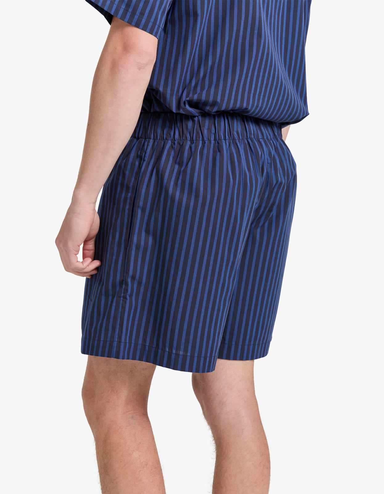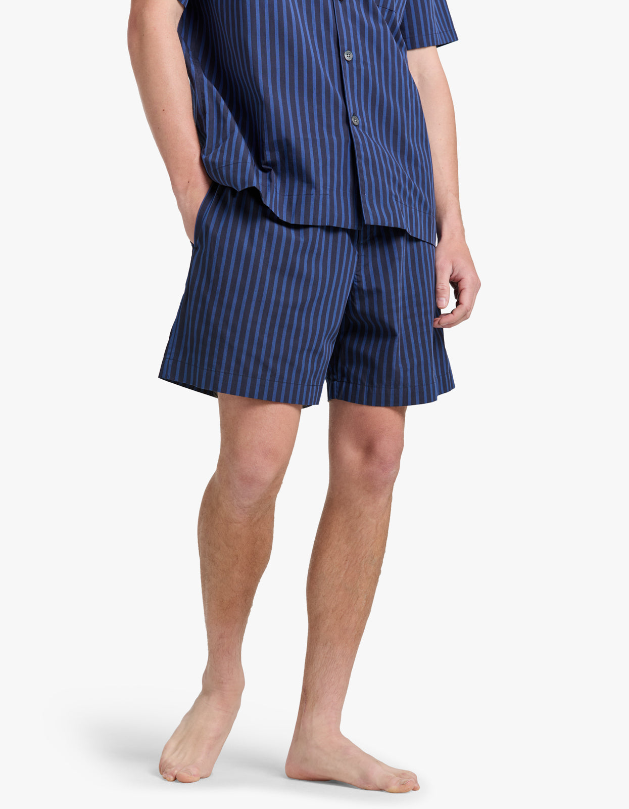 Introducing the Hours Between Lounge Short in Navy/Black Stripe- Perfect for a luxurious night's sleep.