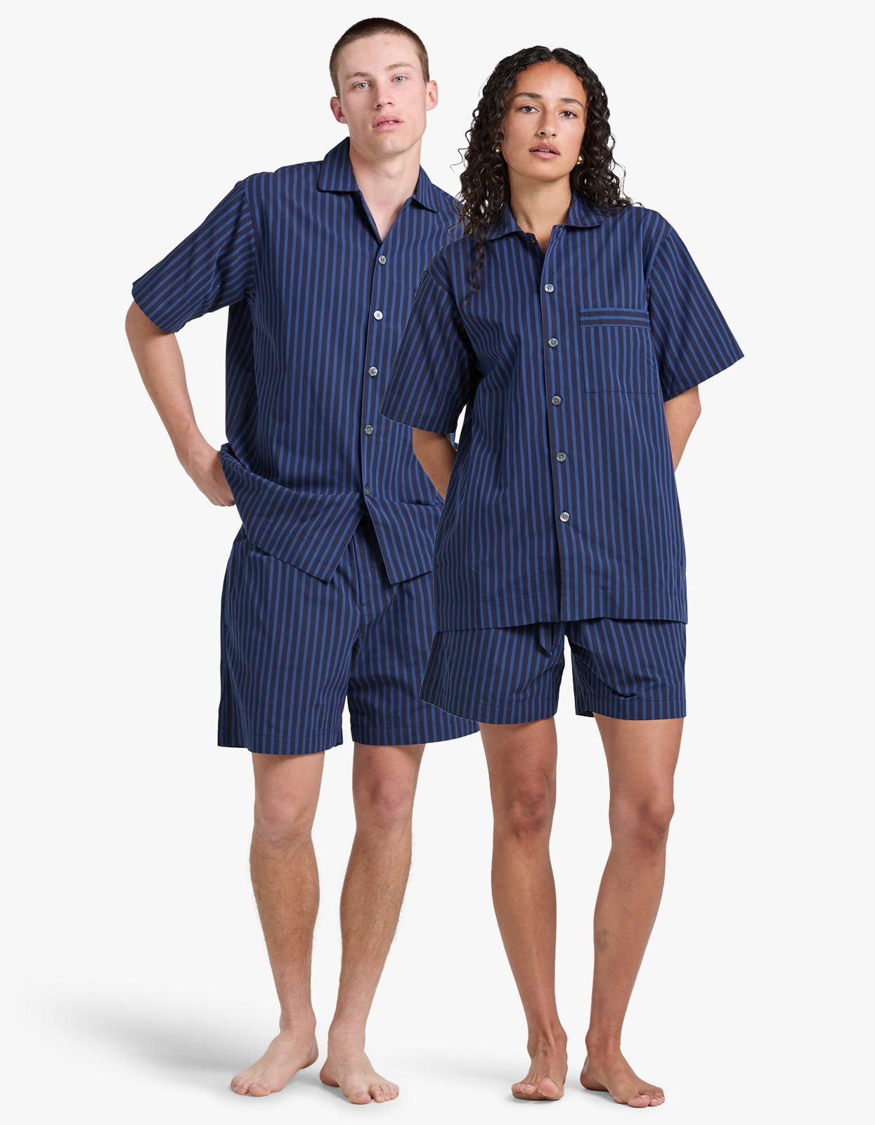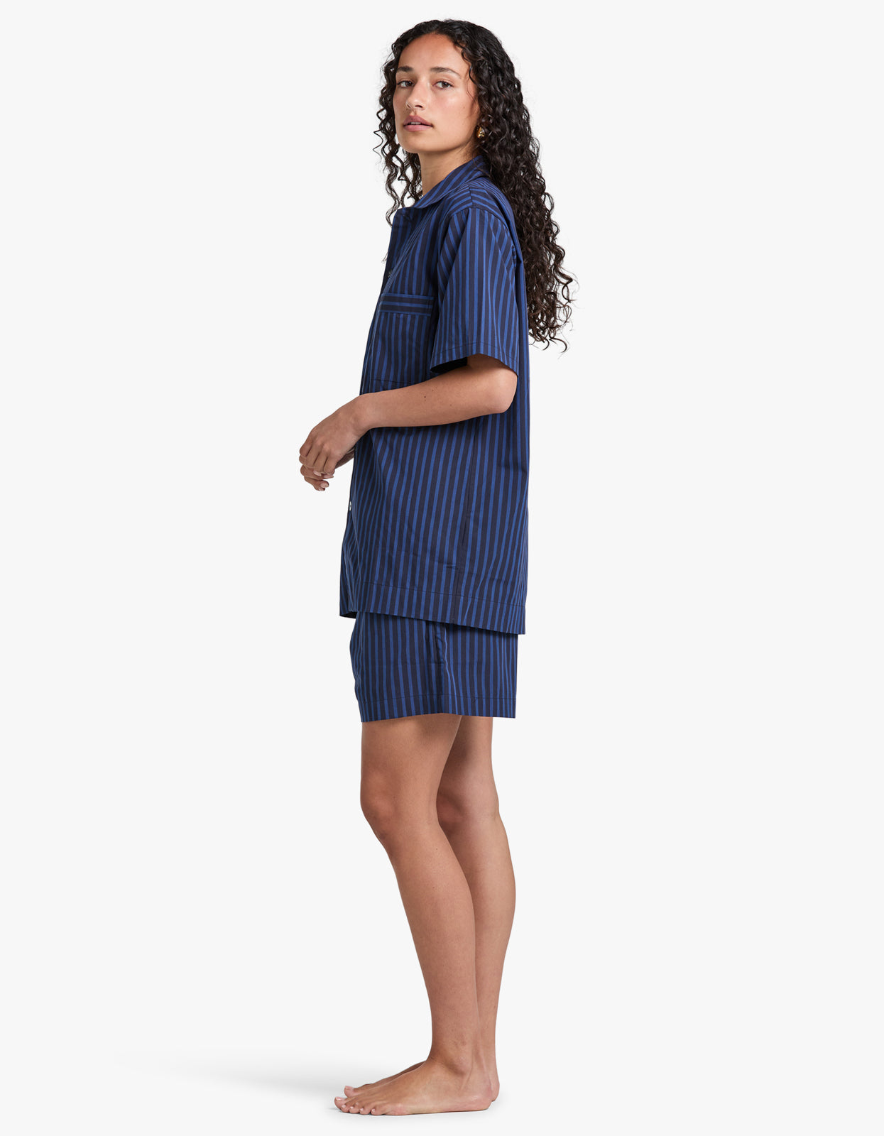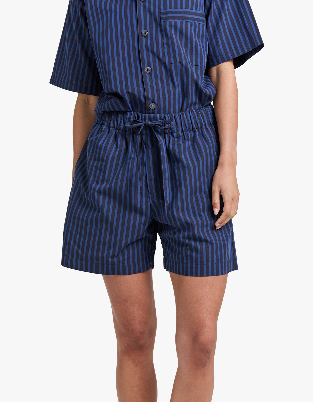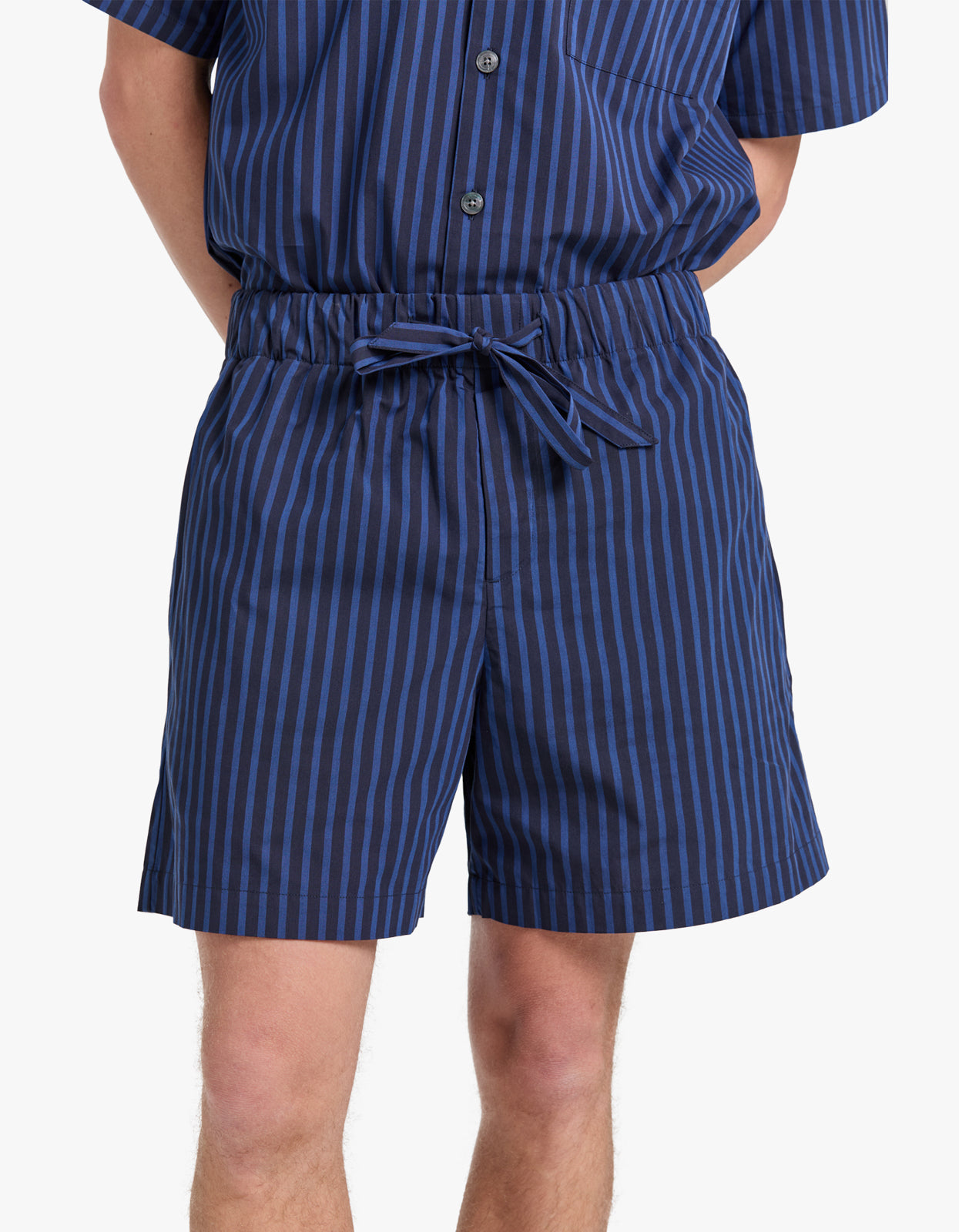 Introducing the Hours Between Lounge Short in Navy/Black Stripe- Perfect for a luxurious night's sleep.