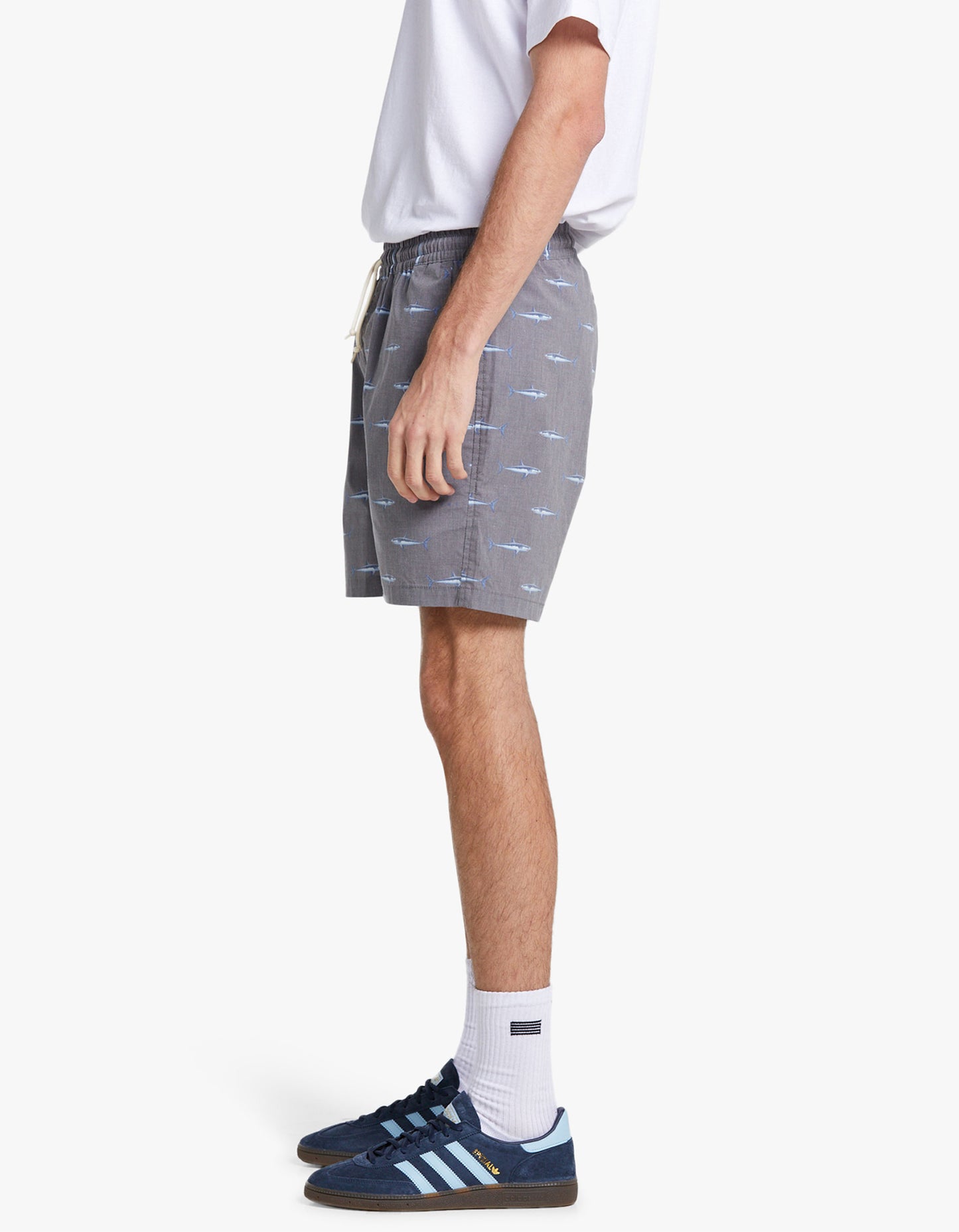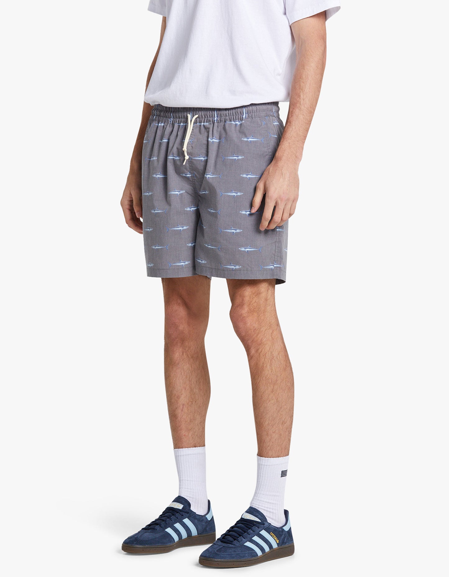 Exclusive to Superette - The On Hunt Short is apart of our latest collab with premium essentials brand, Just Another Fisherman. Sporting an elasticated waistband with a white drawcord, this relaxed short is further detailed with a mako motif print.