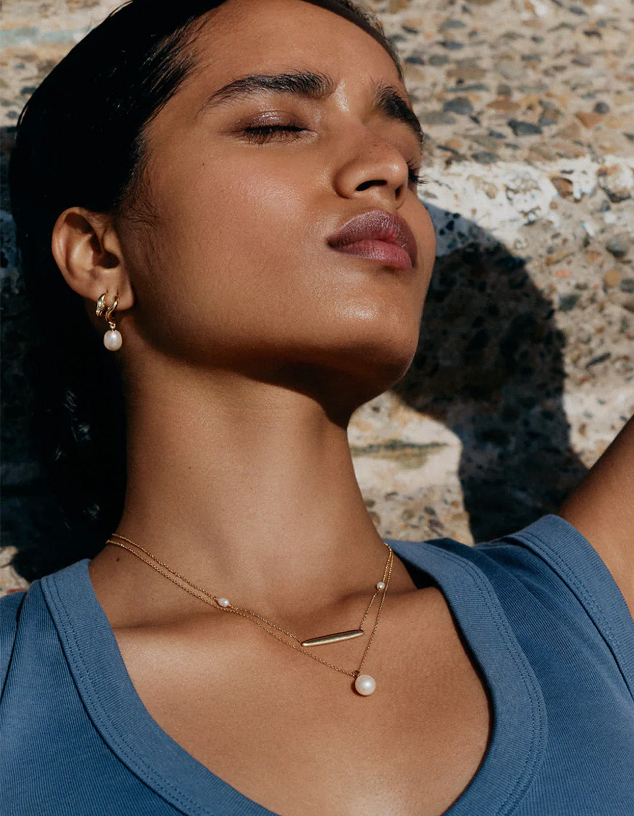 Introducing the Kirstin Ash Place Hoops in 18K Gold Plated – the collection's namesake range that embodies white topaz, a stone celebrated for clarity and awareness, set in elegant baguette and pear-shaped forms along soft, organic curved hoops.