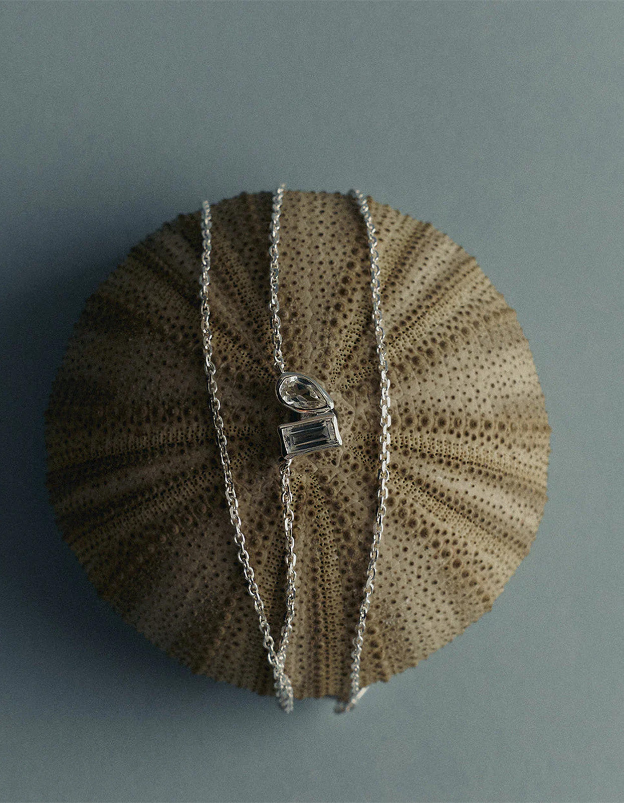 Discover the Kirstin Ash Place Necklace in Sterling Silver – featuring two white topaz stones in elegant baguette and pear cuts that sit delicately along your neckline for a timeless, refined touch.