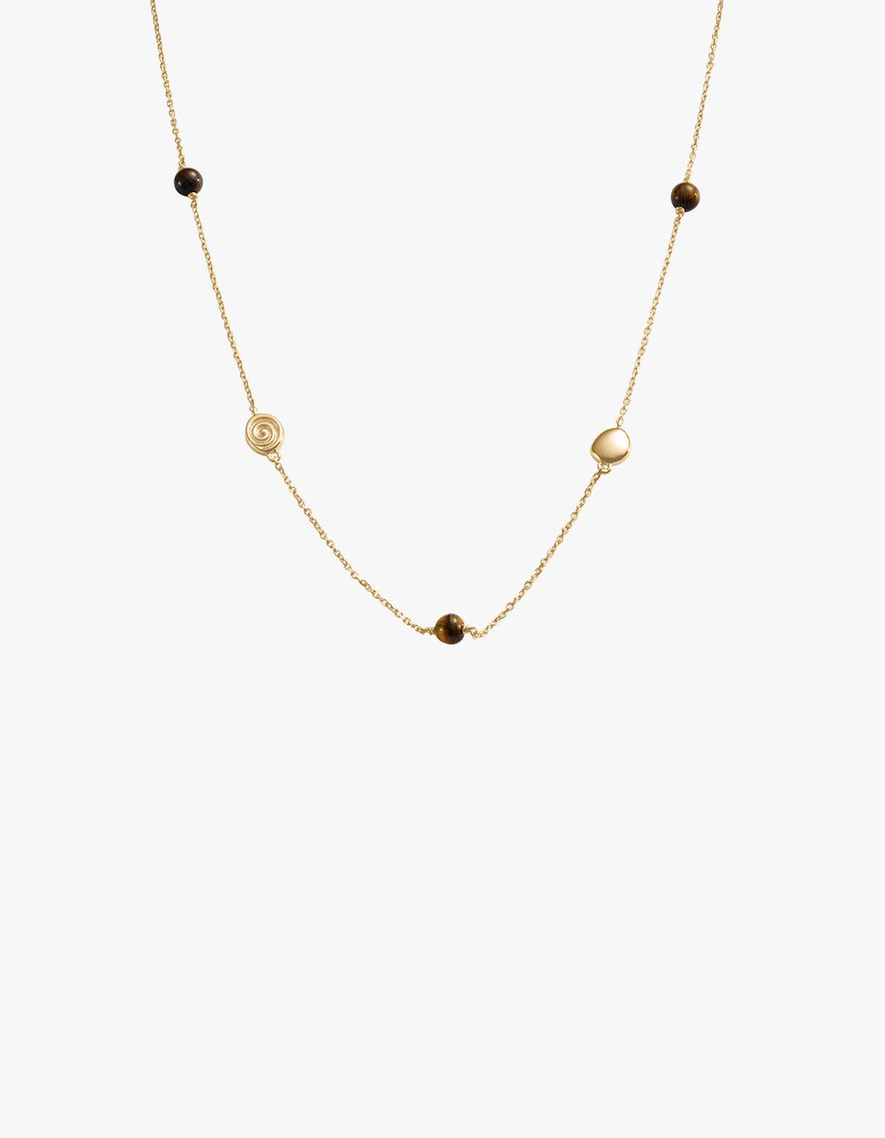 Introducing the Kirstin Ash Tempo Tiger's Eye Necklace in 18K Gold Vermeil – designed to layer effortlessly with your everyday favourites, featuring tiger's eye stones suspended along the centre of an 18k gold vermeil chain.