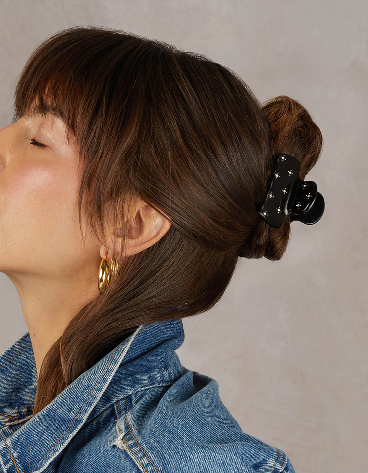 With its luxurious black colour and sparkling rhinestones, this clip will elevate your hair up in style. Say goodbye to boring hair days and embrace the sophistication of a fashion-forward accessory.