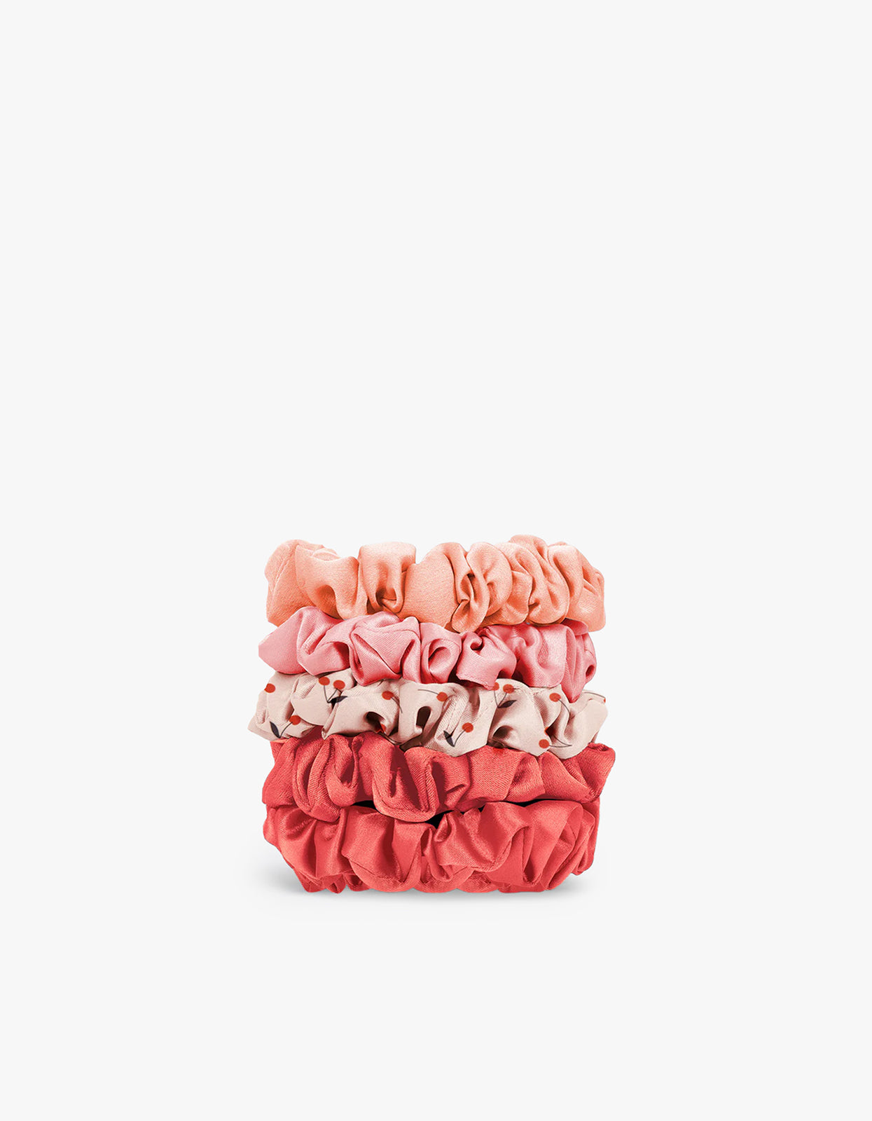 Ruched Satin Scrunchies 5Pc Set - Cherry Blossom