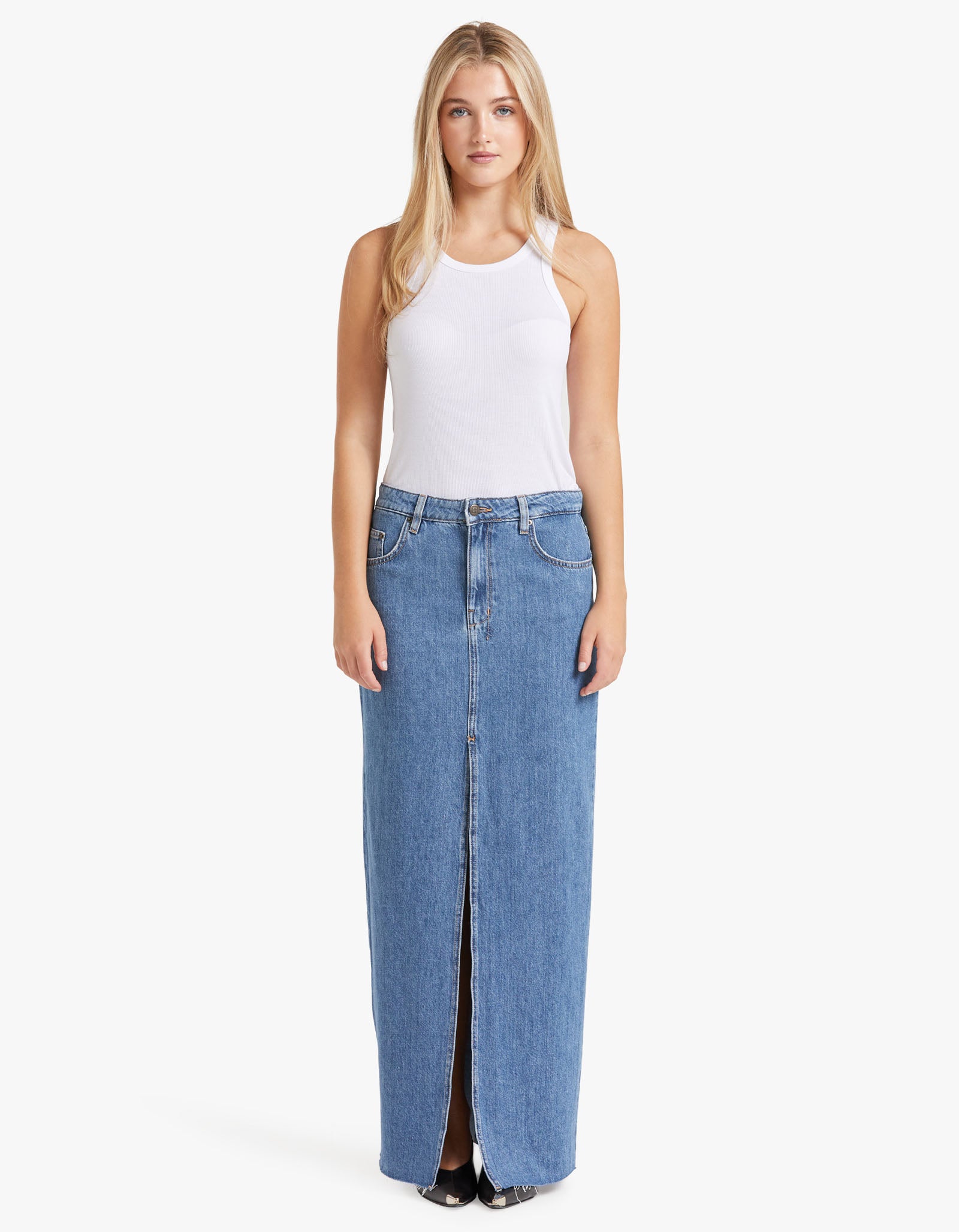 - Denim maxi skirt