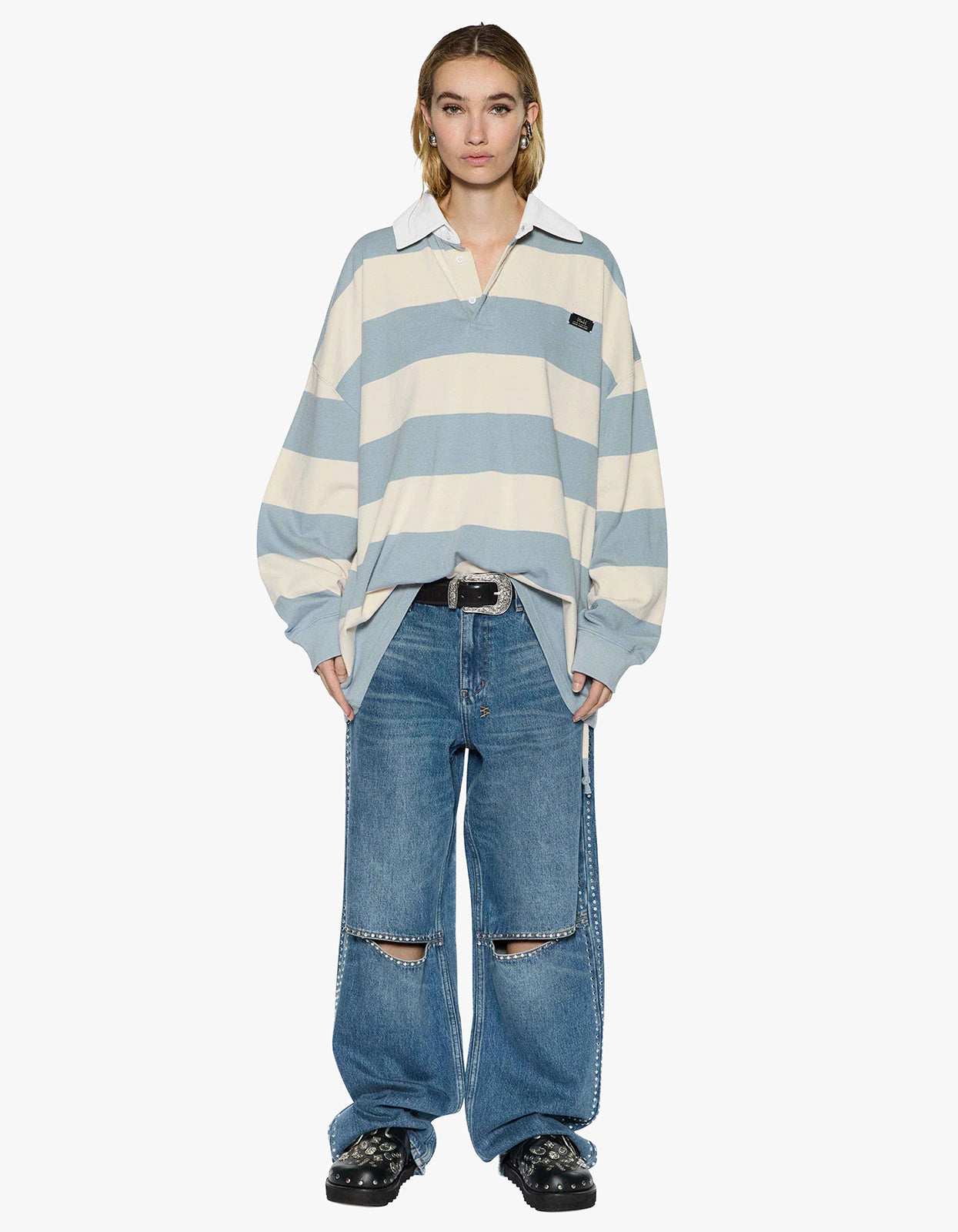 Ksubi’s Low Rider - Texas Blue Studded reinvents the iconic denim silhouette with a refined edge.