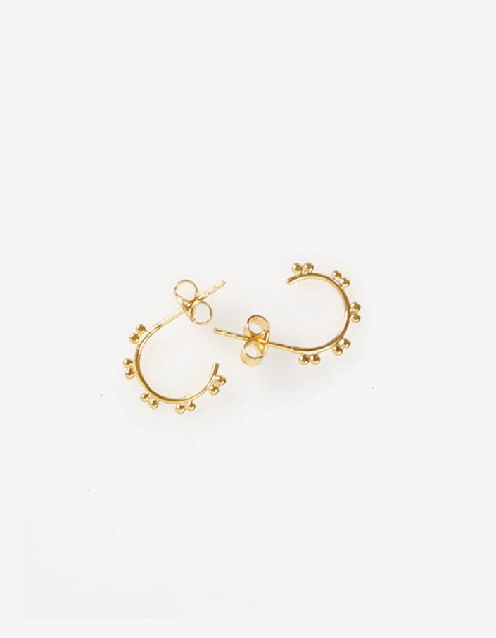 Add a touch of bohemian flair to your look with the Hoop Stud Earrings in silver from La Tribe. Delicate studs encircle each hoop, creating a playful and trendy vibe. Pair them with any outfit for a fun and stylish accessory.
