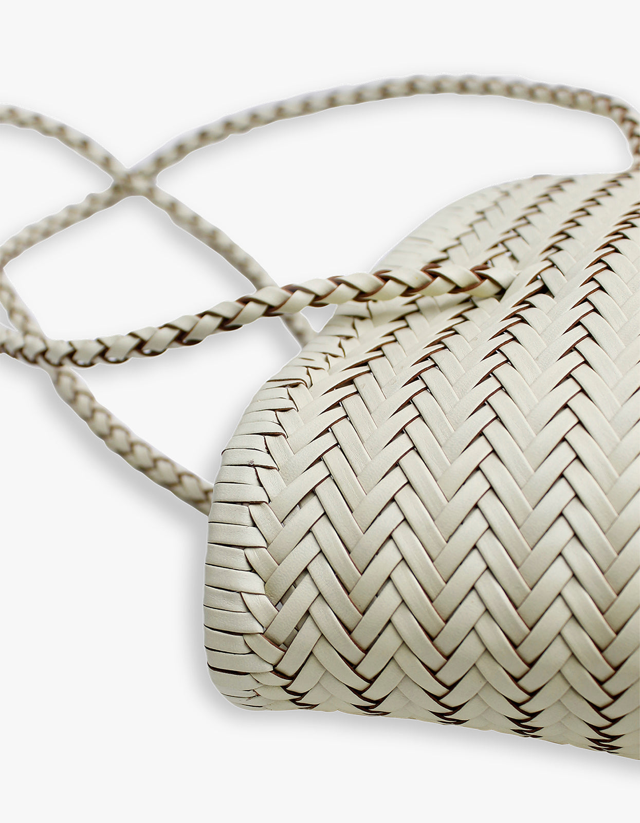 Hand-woven for a truly luxurious touch, this bag is the perfect size for all your essentials. Add a touch of sophistication to any outfit with this must-have accessory.