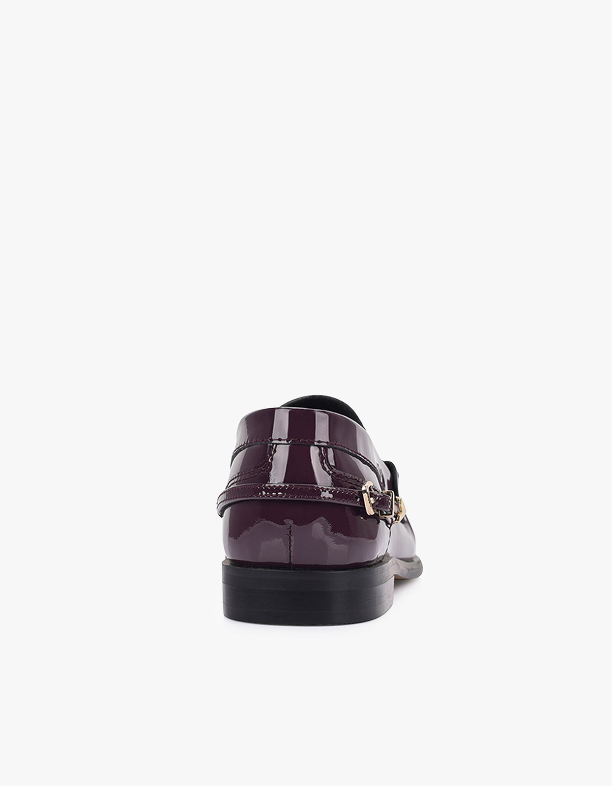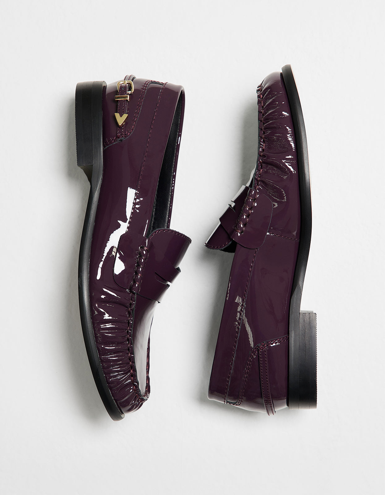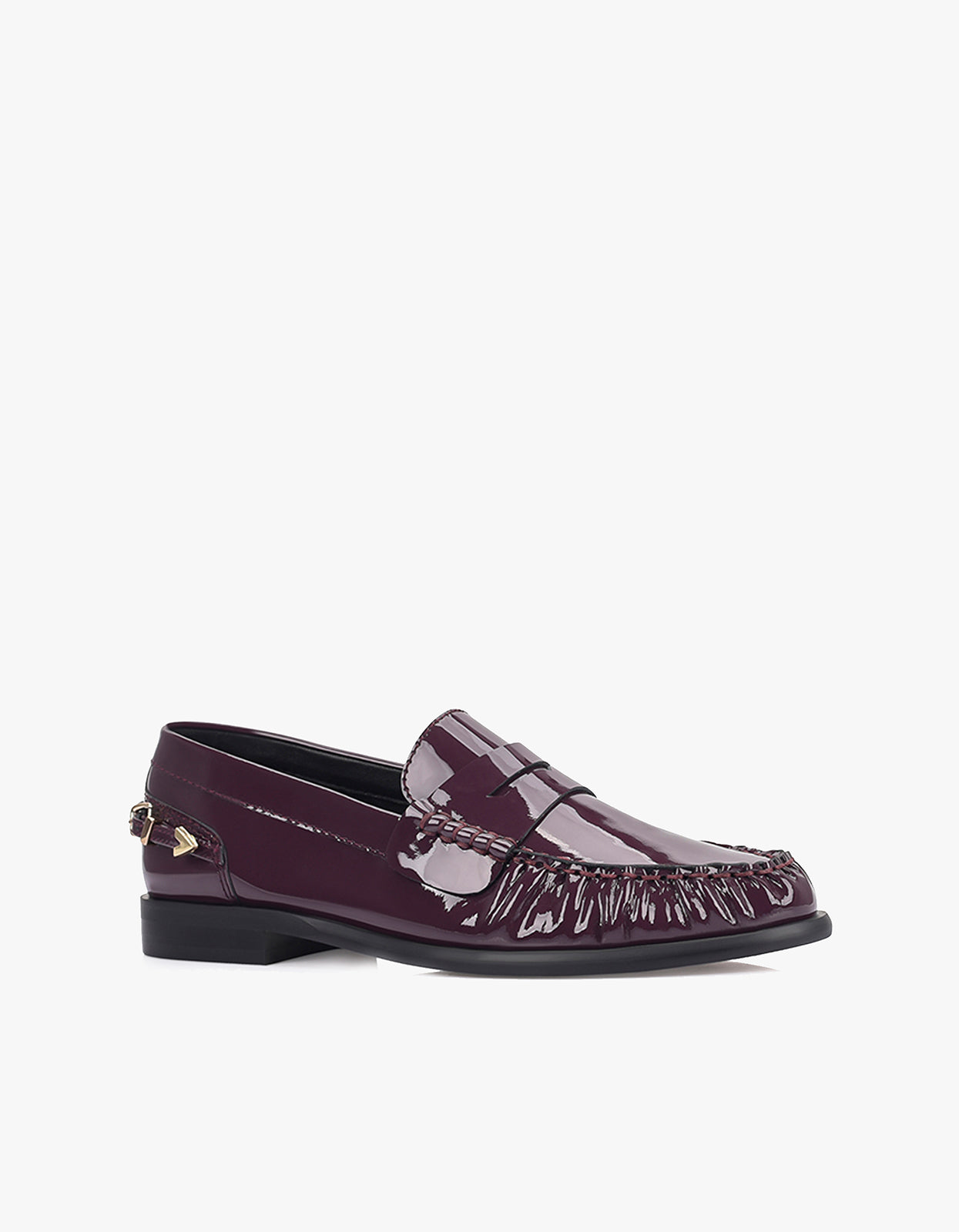 The Spencer Loafer by Lana Wilkinson steps out in high-shine eggplant patent.