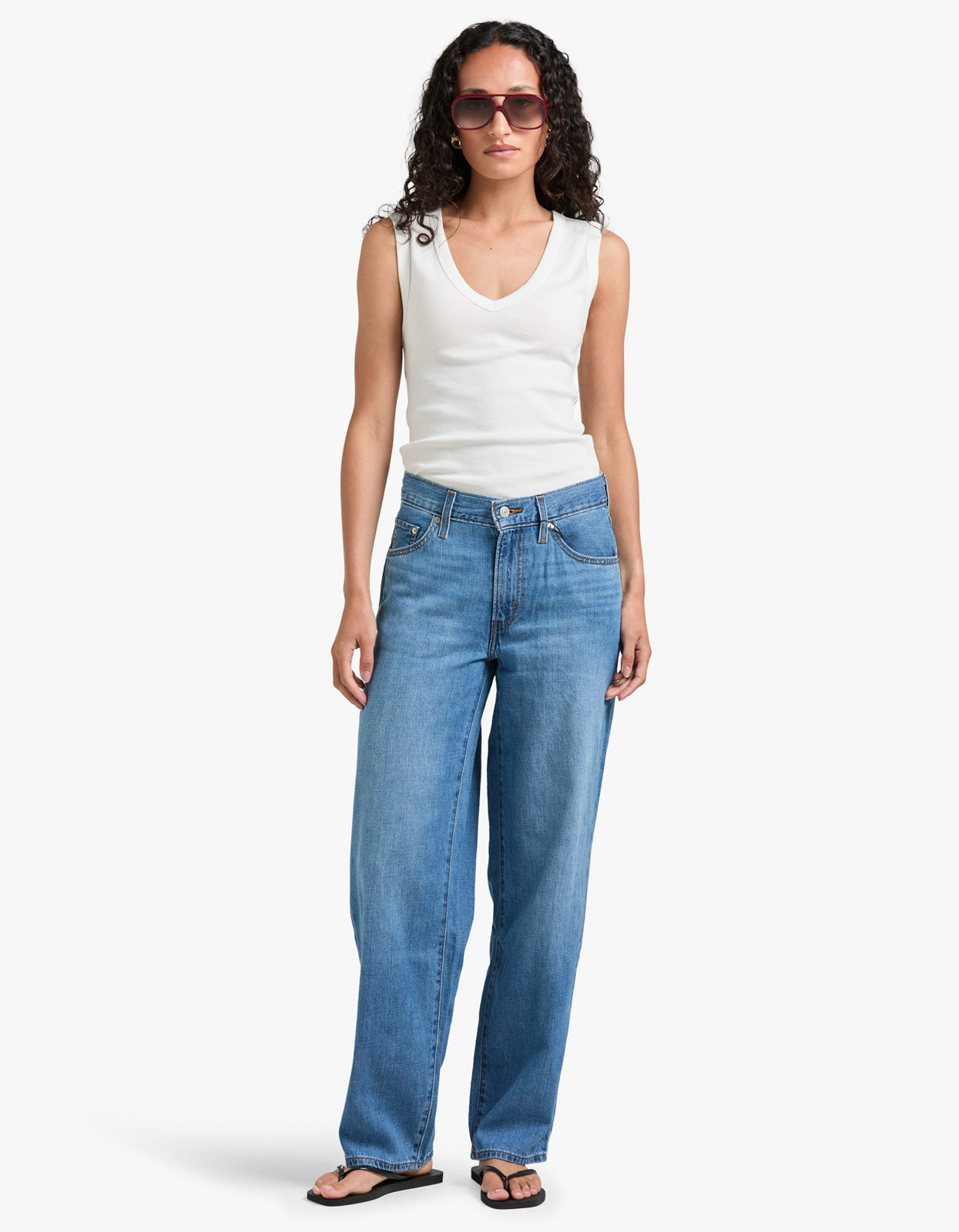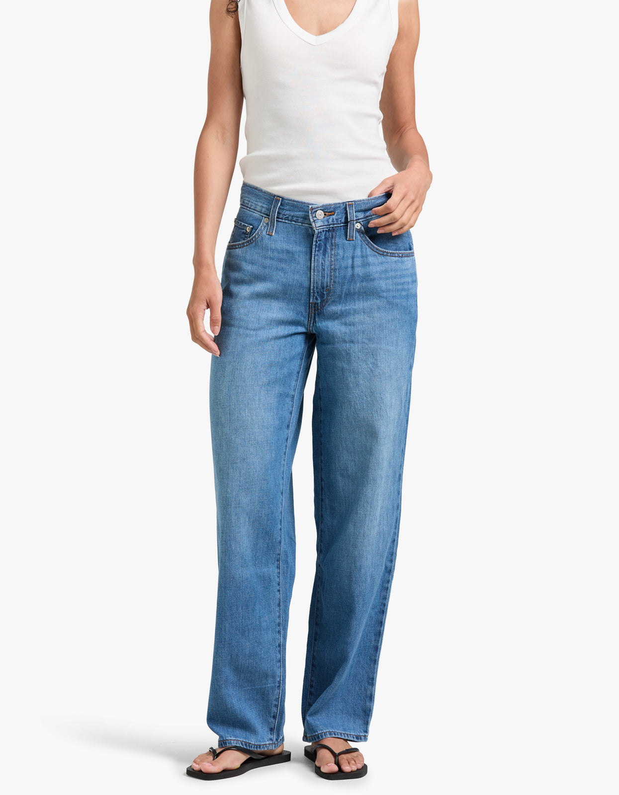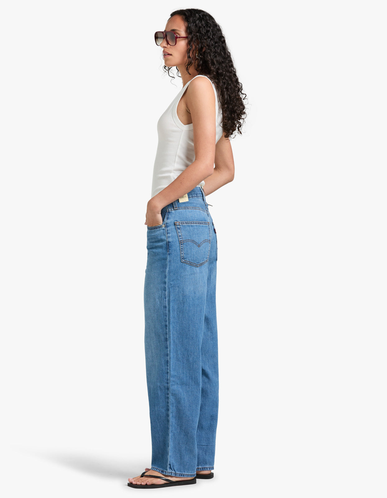 - Roomy and slouchy through the hip and thigh