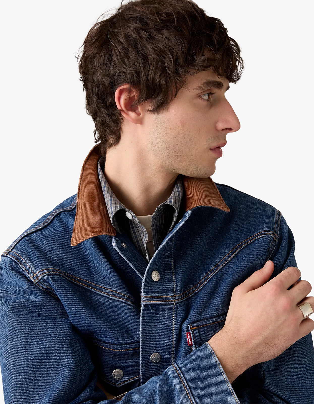 The Western Shorthorn Trucker Jacket by Levis combines timeless design with refined craftsmanship.