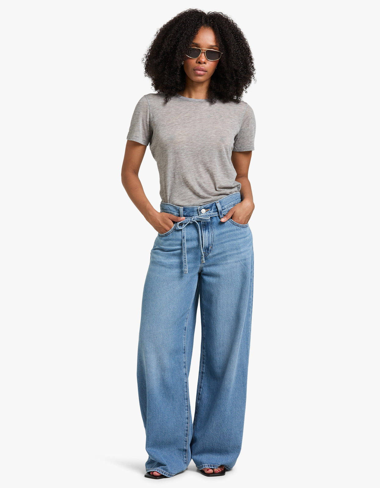 Introducing Levi's latest XL Straight Jeans, a fusion of oversized baggy cut, wide straight leg, and adjustable rise, complete with a versatile tie waistband.