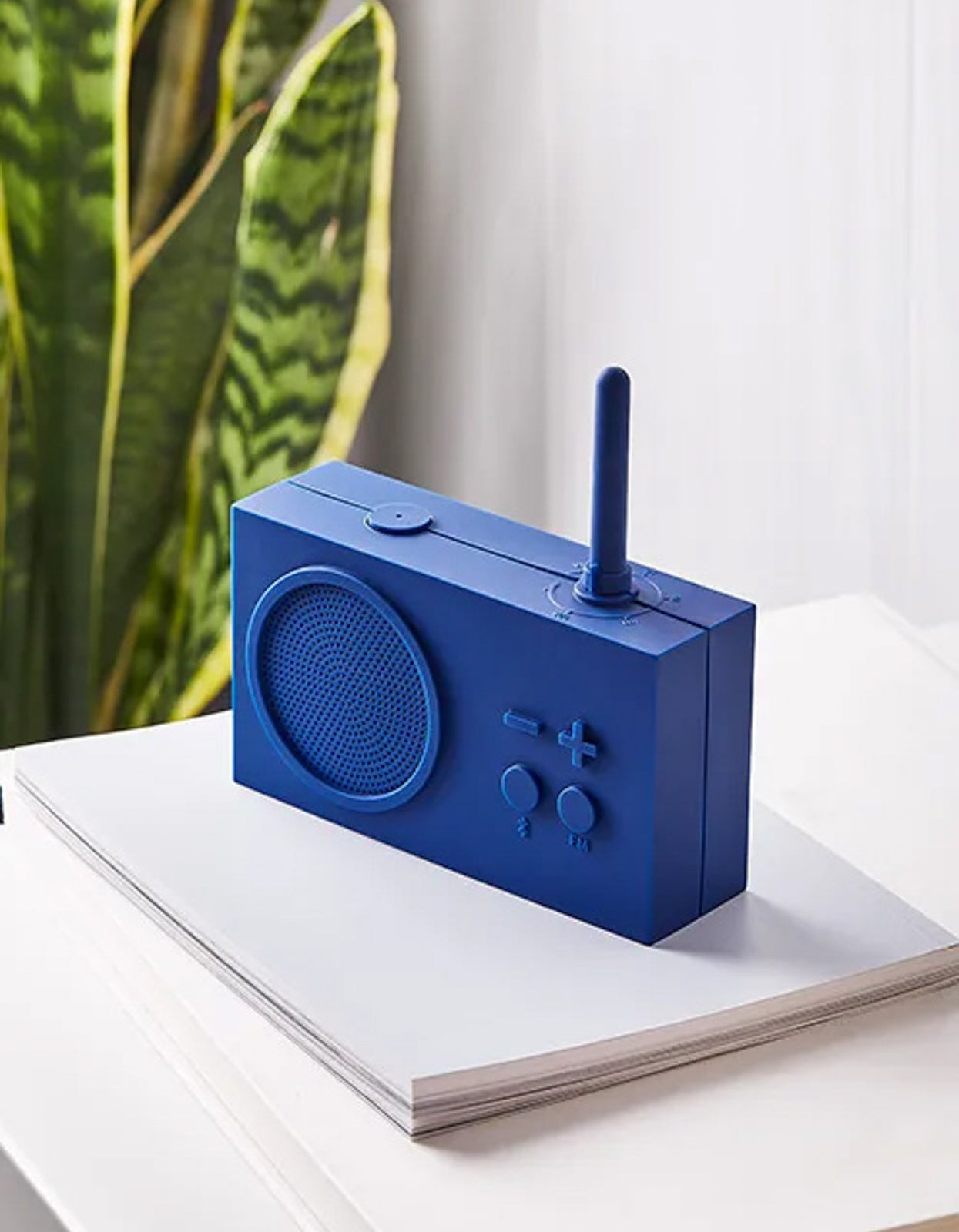 Wrapped in splash-proof silicone with a rich dark-blue finish, this compact companion channels the nostalgia of AM/FM radios while bringing your playlists to life with a crisp 3W Bluetooth speaker.