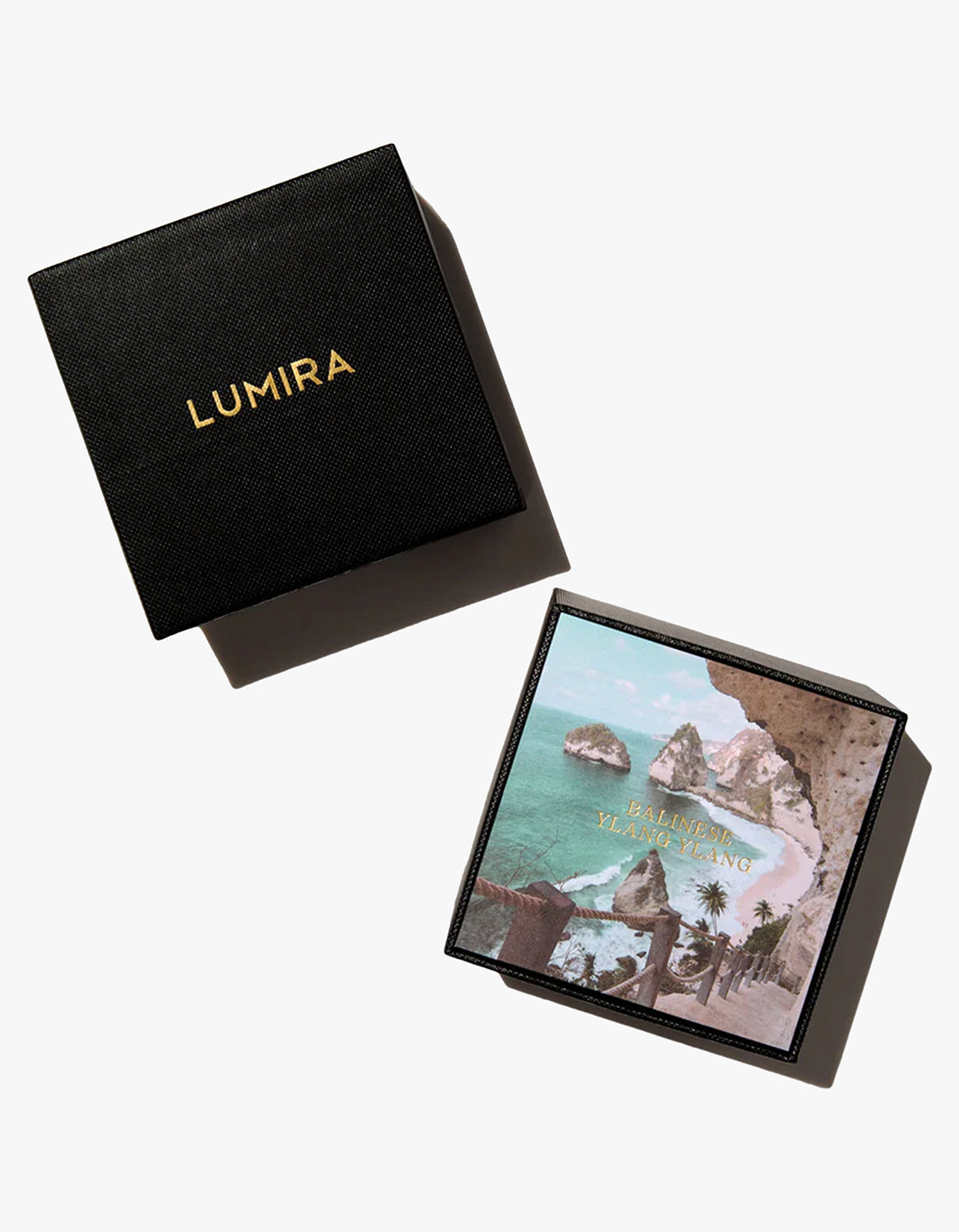 BALINESE YLANG YLANG: Bergamot, Thyme Leaf & Black PepperInfused with exquisite fine fragrance oils reminiscent of places both near and far Lumira's luxury candle collection is a celebration of beautiful scent sophisticated design and the spirit of travel.