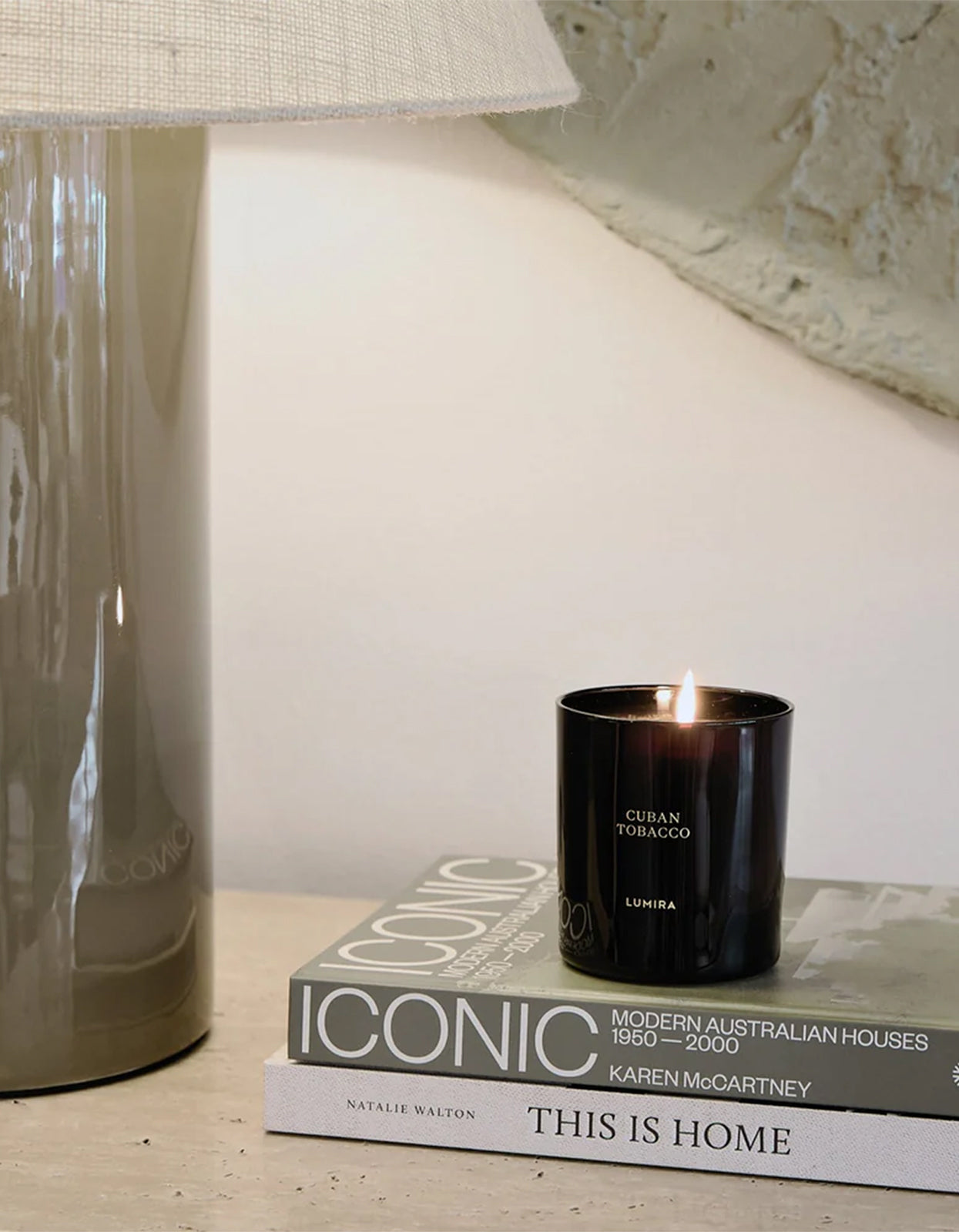 CUBAN TOBACCO: Tangerine, Cardamom & Clove BudInfused with exquisite fine fragrance oils reminiscent of places both near and far Lumira's luxury candle collection is a celebration of beautiful scent sophisticated design and the spirit of travel.