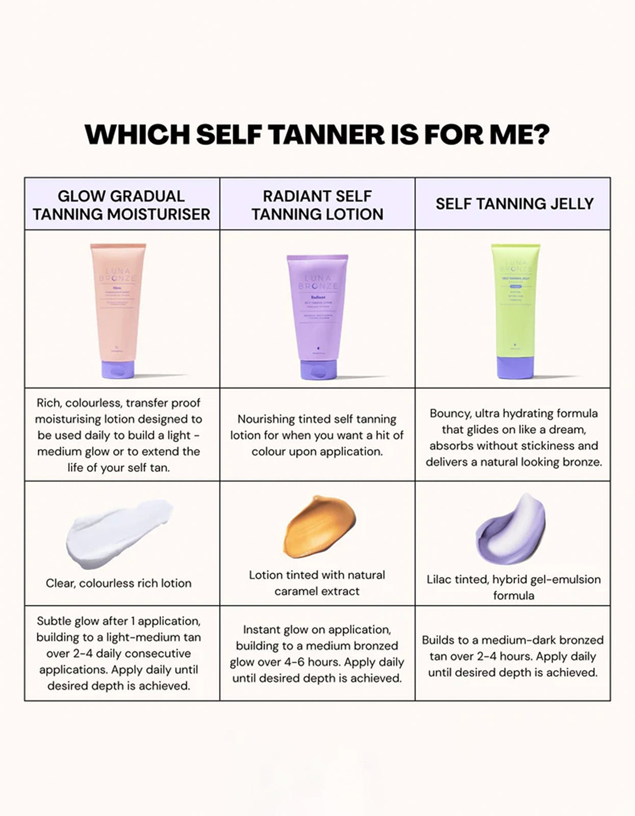 Meet the Luna Bronze's Glow Gradual Tanning Moisturiser, your skin's new best friend.