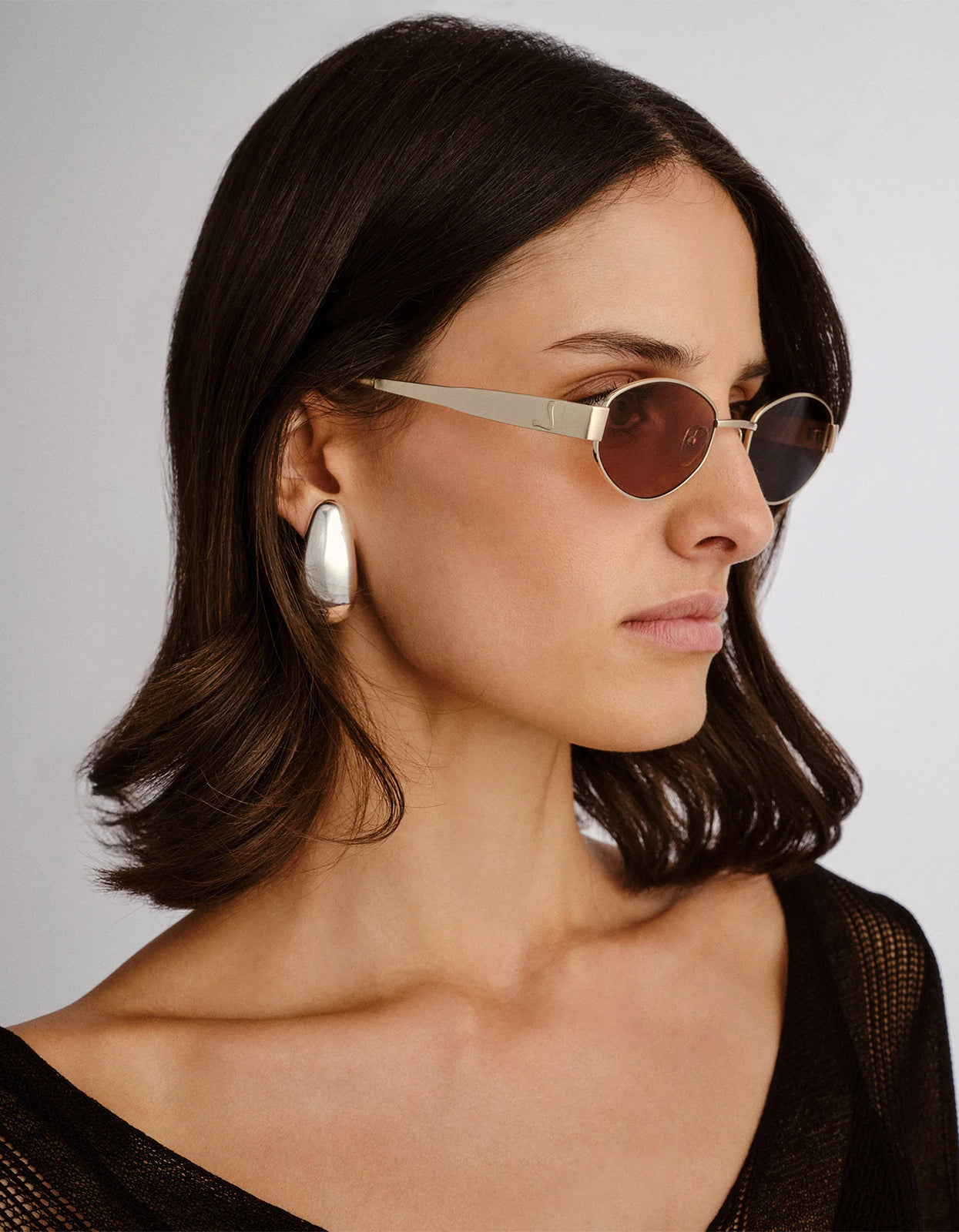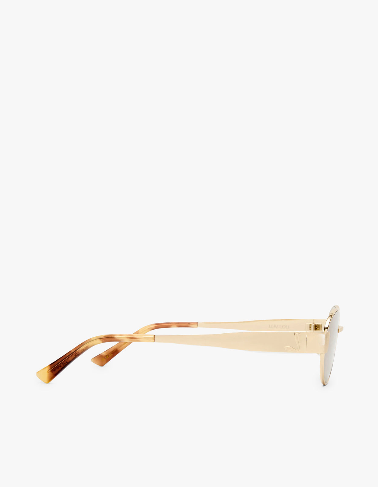 Crafted from a high quality brushed gold metal frame, this oval shape is sleek and feminine.