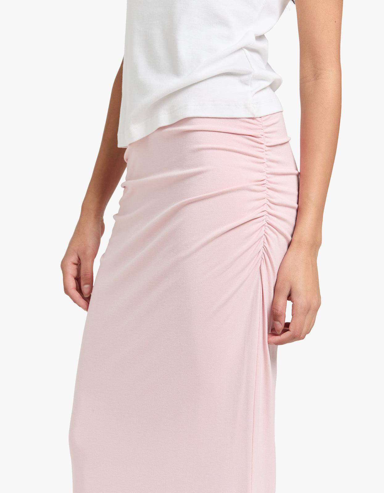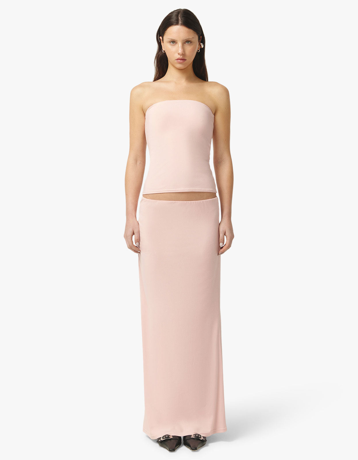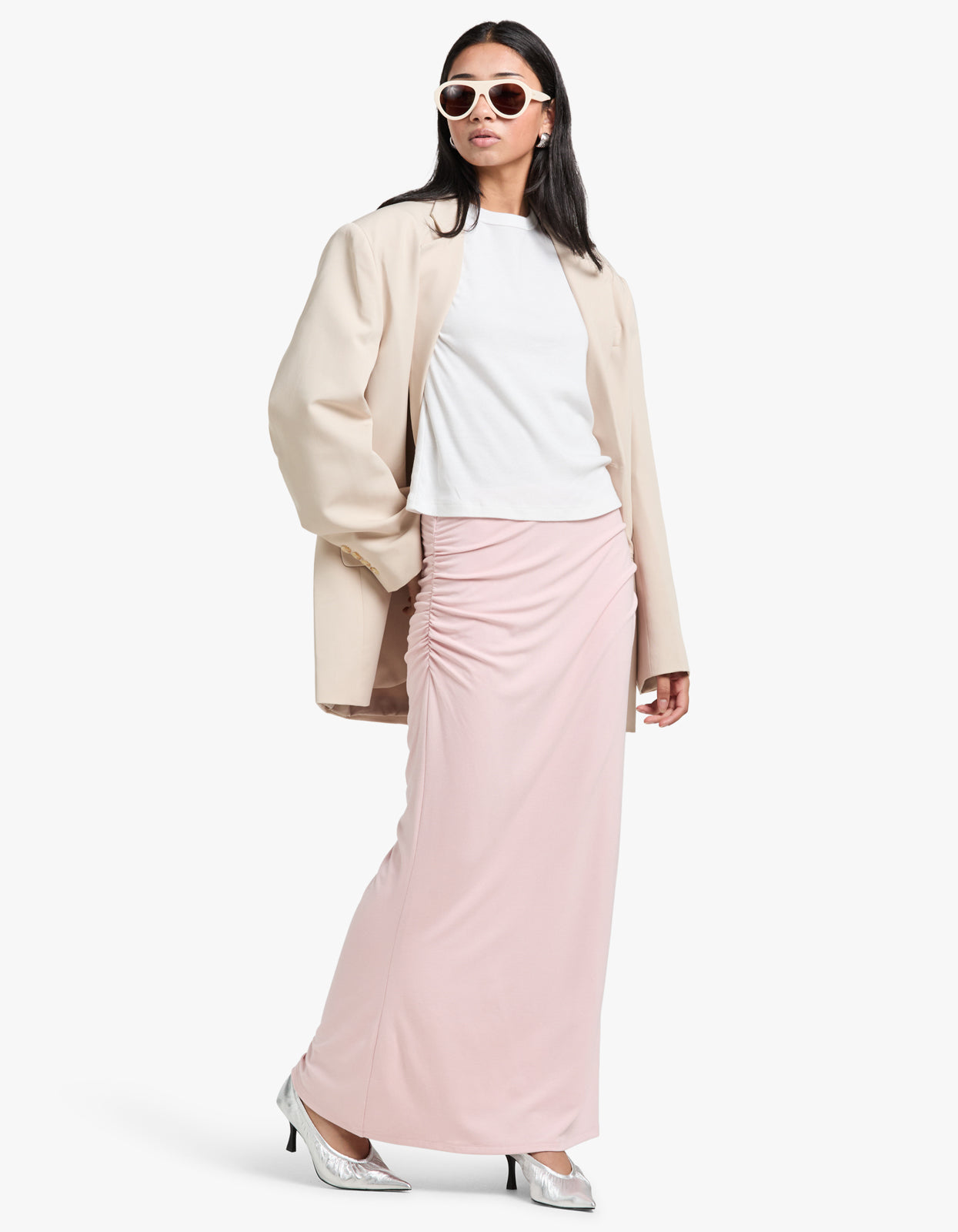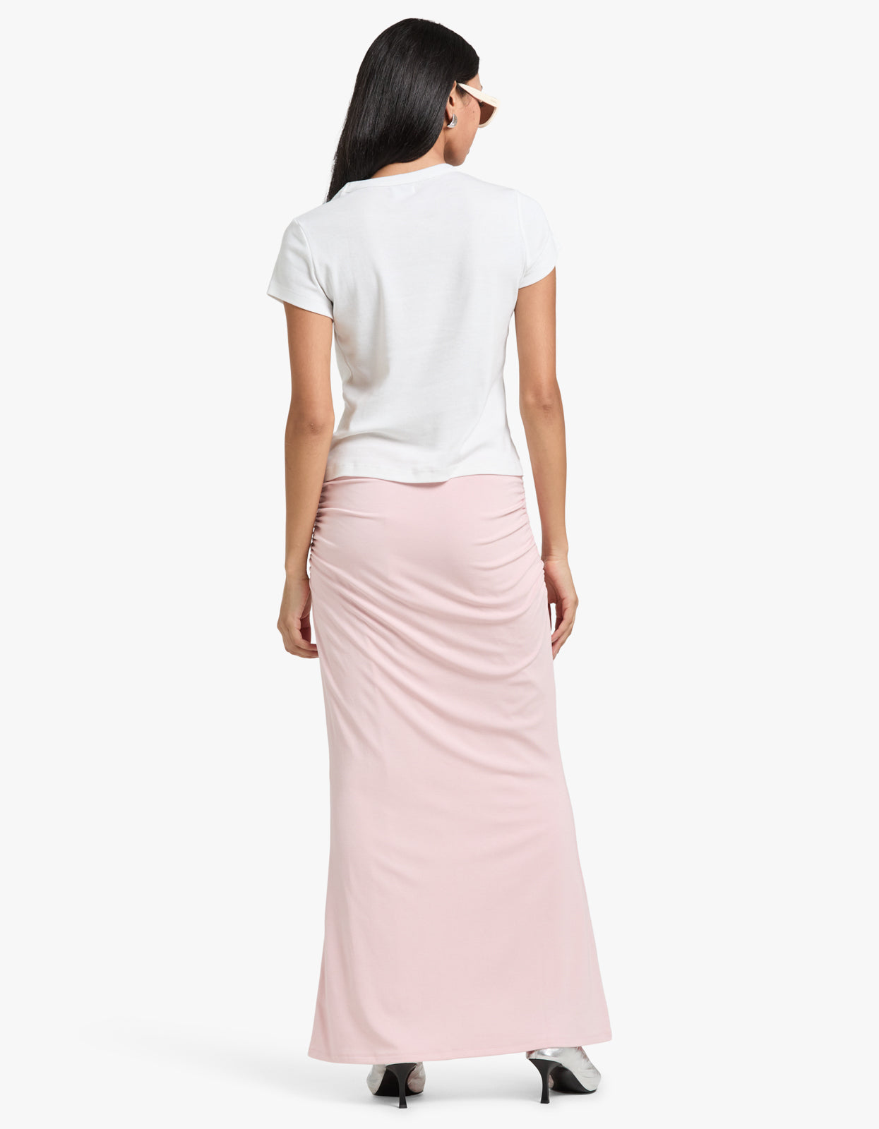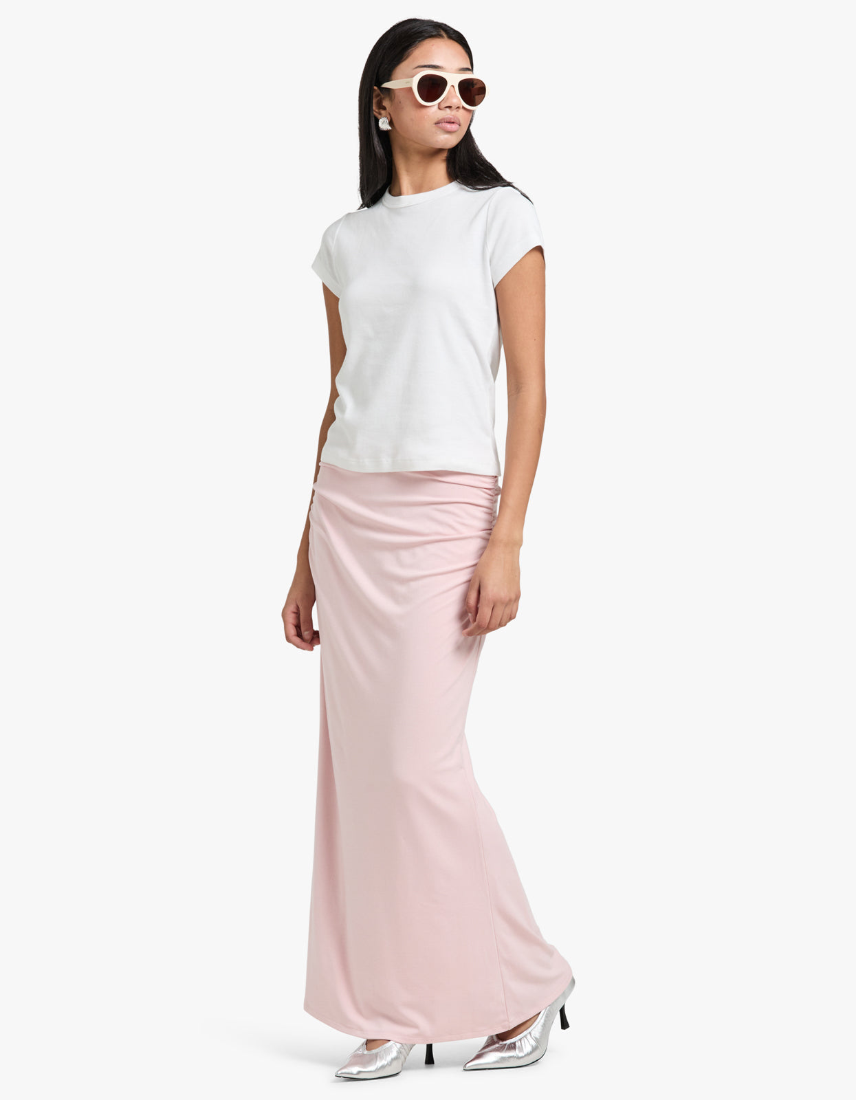 Transform your wardrobe with our Maison Essentiele baby pink Jersey Maxi Skirt.