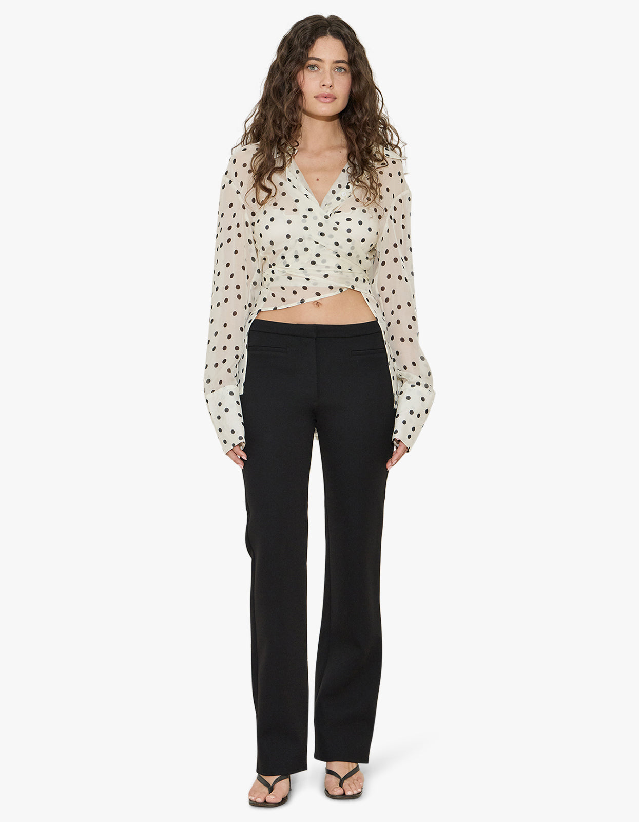 Silk Chiffon Wrap Shirt - Cream & Black Polka Dot