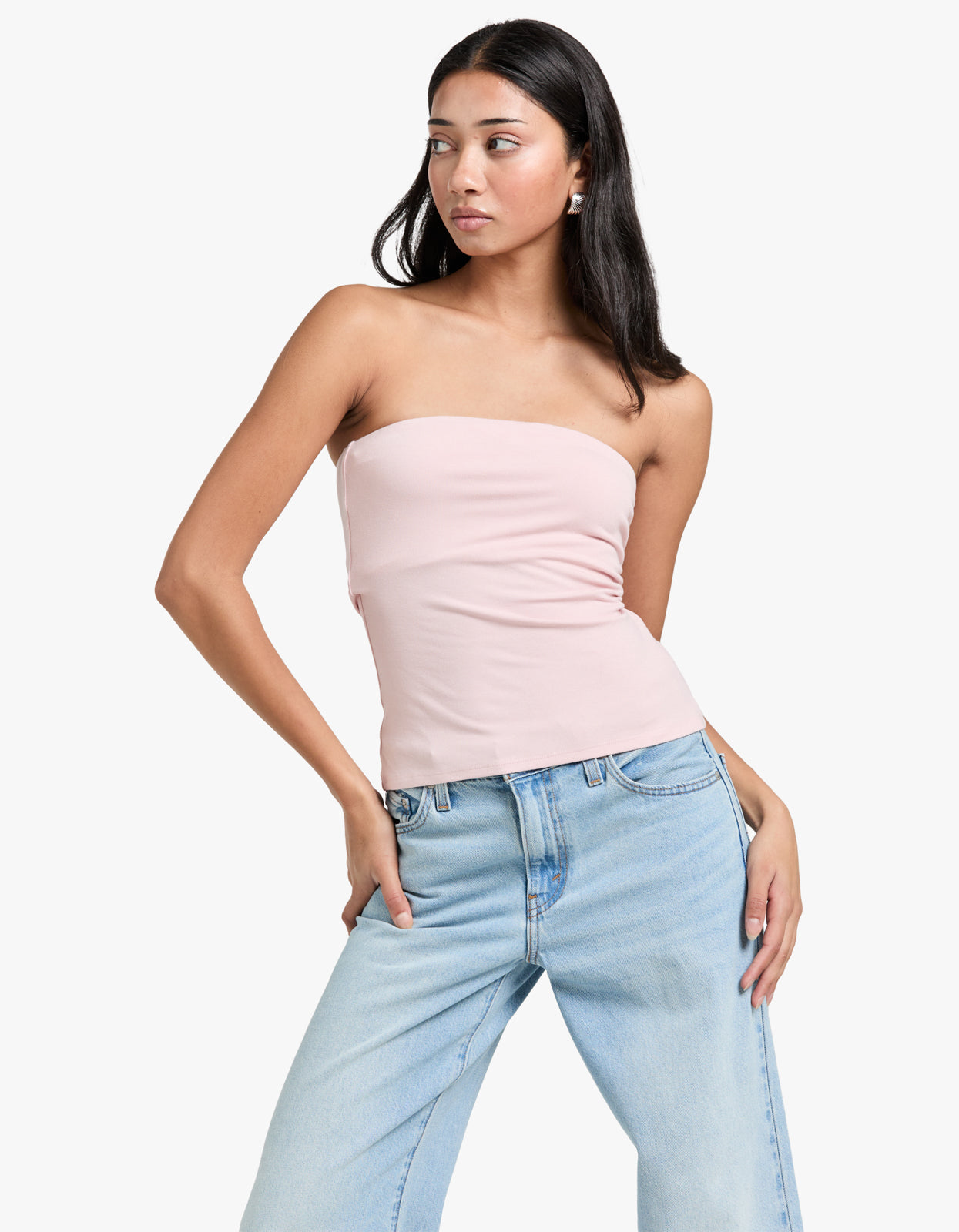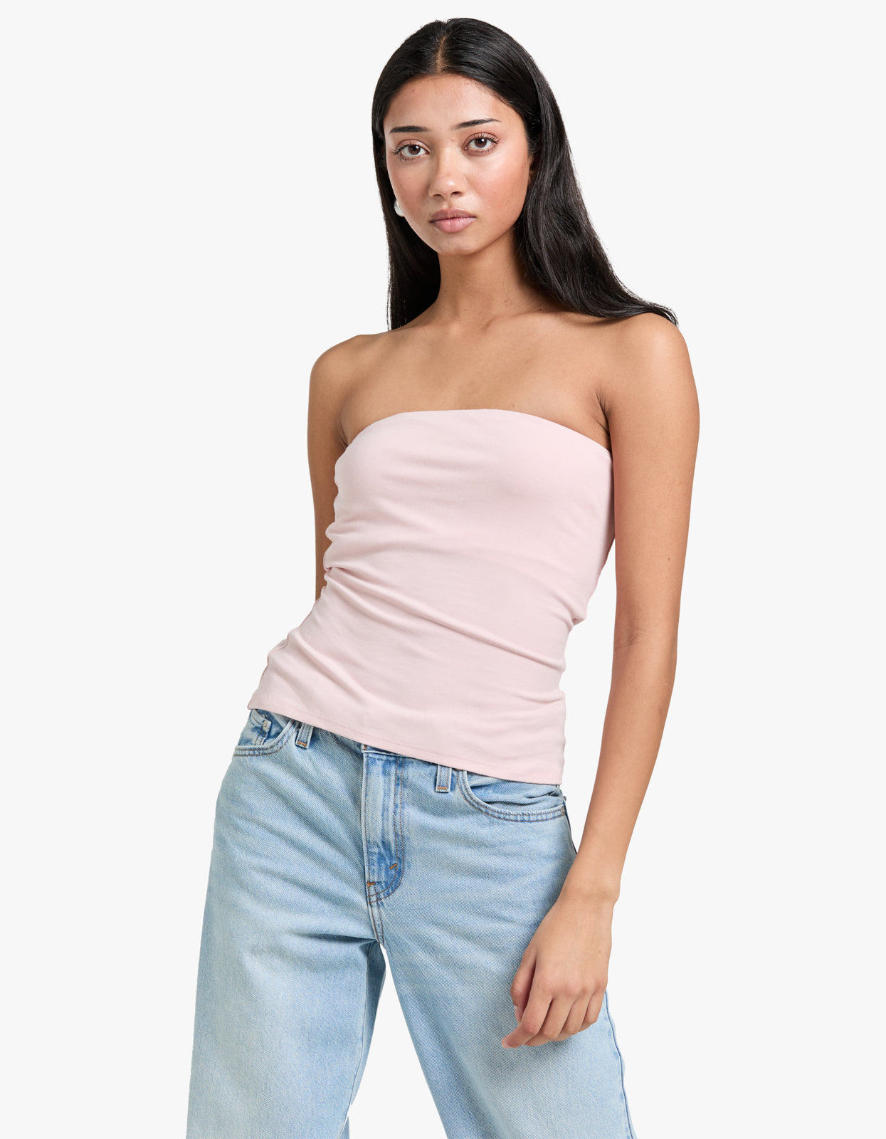 Elevate your wardrobe with our luxurious Maison Essentiele baby pink strapless top.