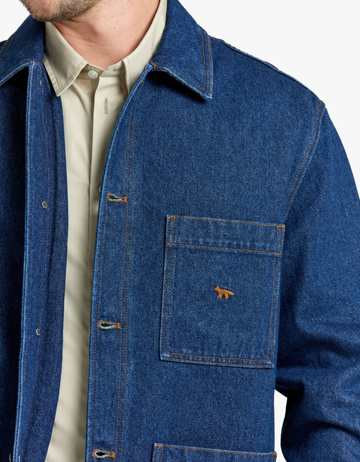 Elevate your wardrobe this season with Maison Kitsuné's Denim Workwear Jacket. This must-have piece boasts three convenient front pockets and will quickly become a staple in your rotation.