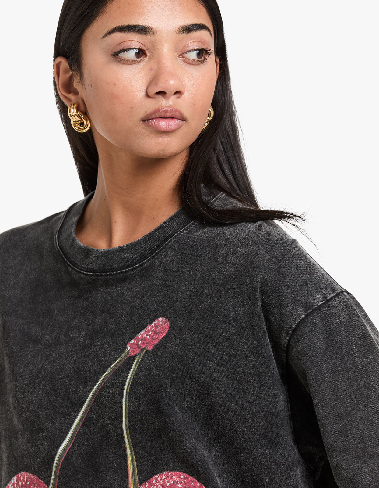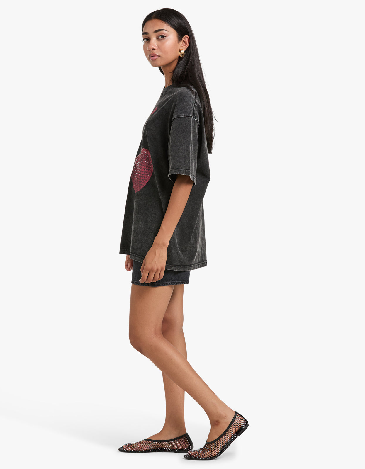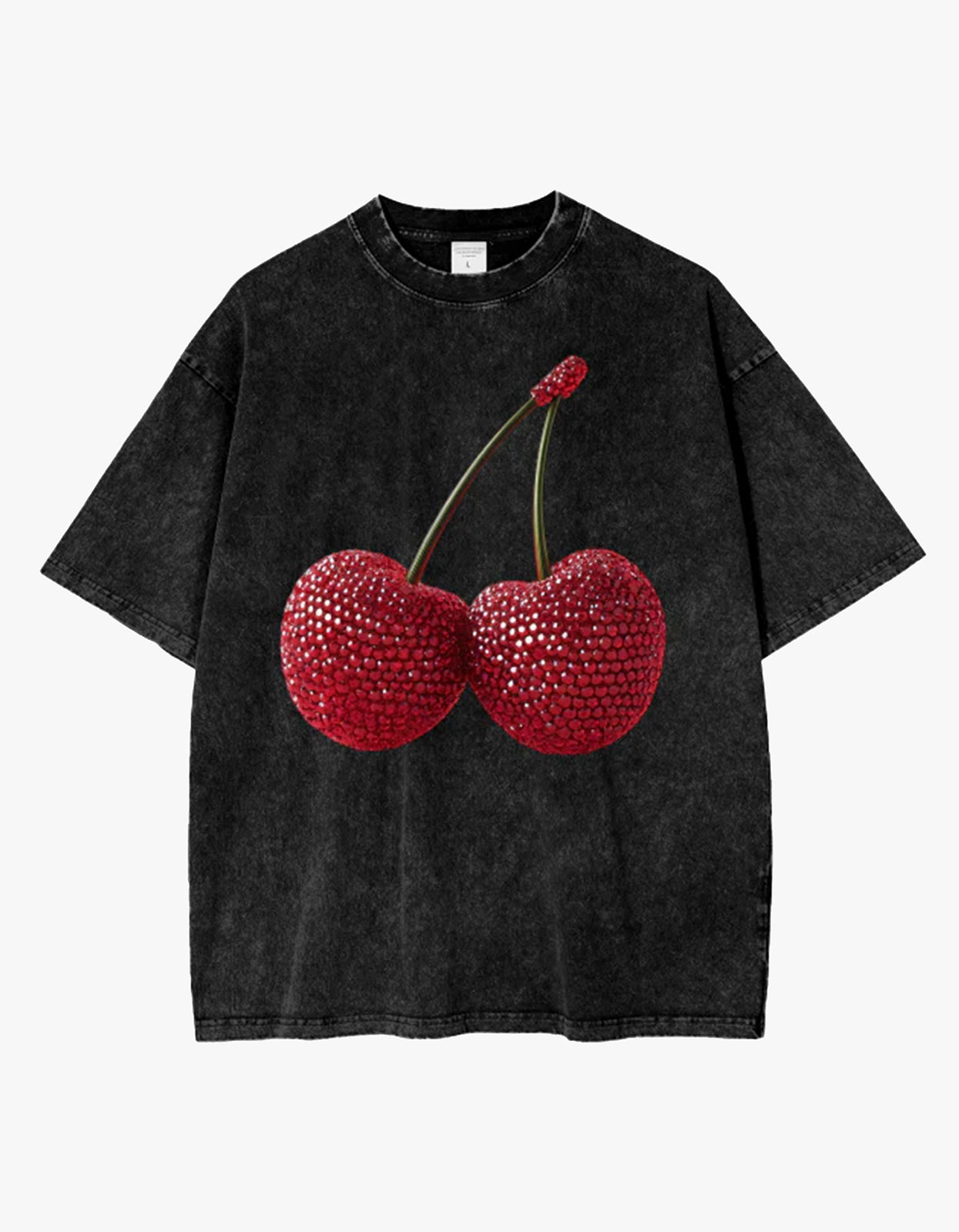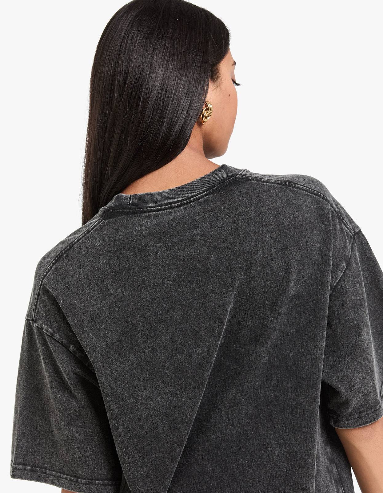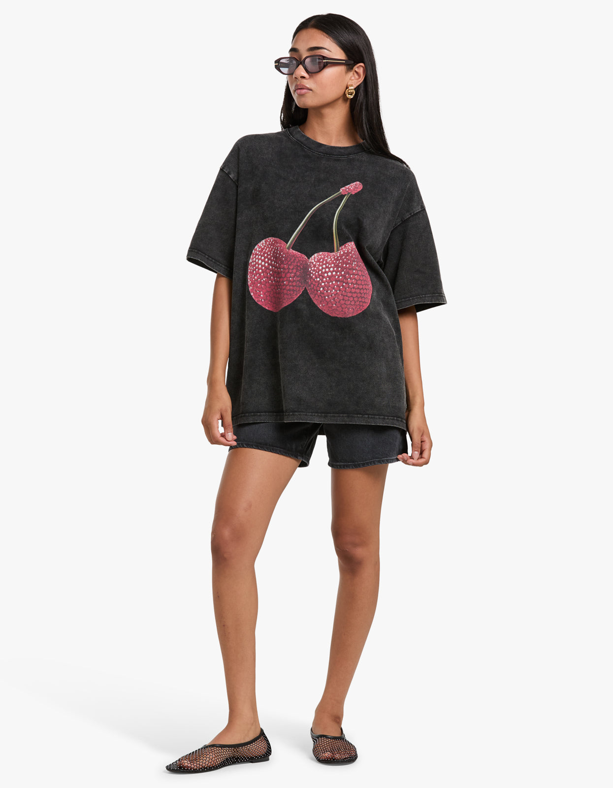 Unleash your inner style with our Cherry Baby Acid Wash Oversized T-Shirt in Black from Maku The Label.