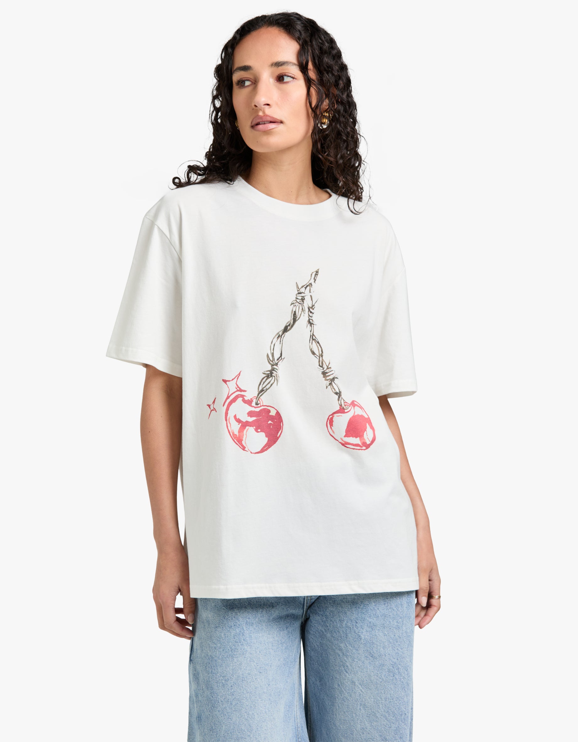 Inspired by Maku The Label's love of ink, this Cherry Barb t-shirt in white brings serious attitude to your wardrobe.