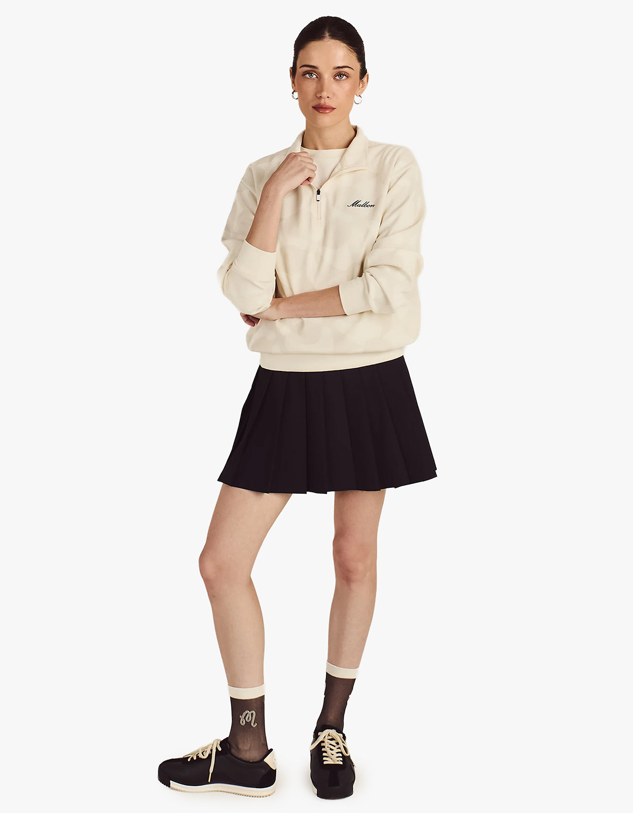 Featuring ribbed cuffs and a tailored waistband, it offers a refined, structured fit. Its repeating club pattern reflects the heritage-inspired theme of our Fall ’25 Collection, making it an elegant layering staple for the season.