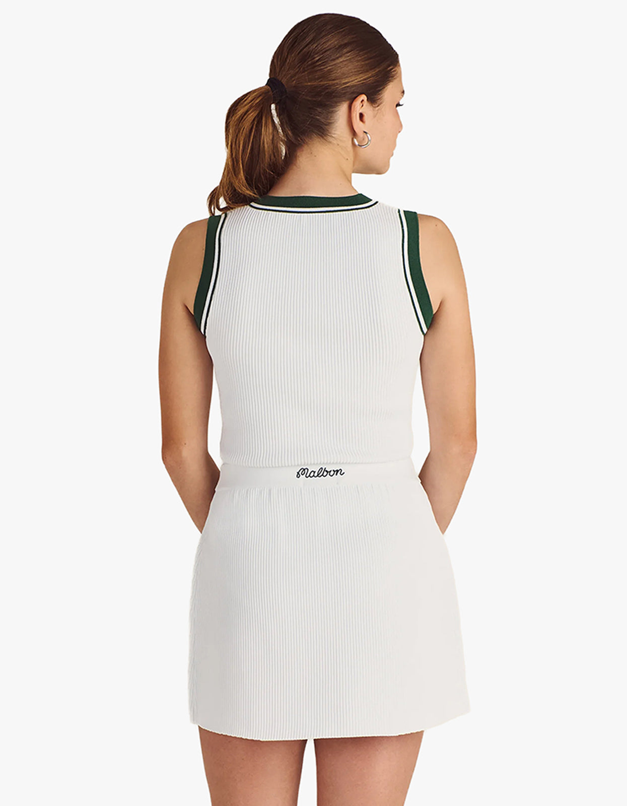The Luna Rib Knit Tank in Ivory from Malbon combines refined simplicity with subtle texture.