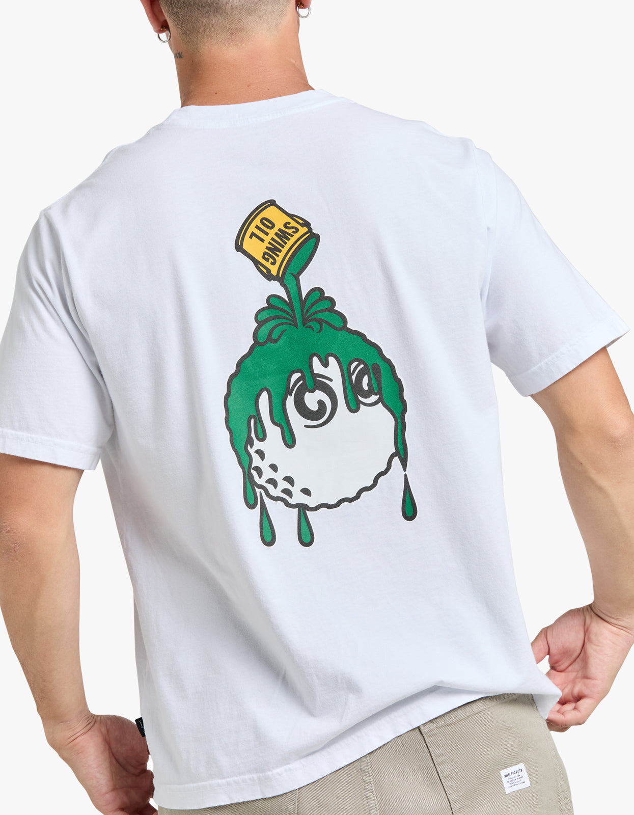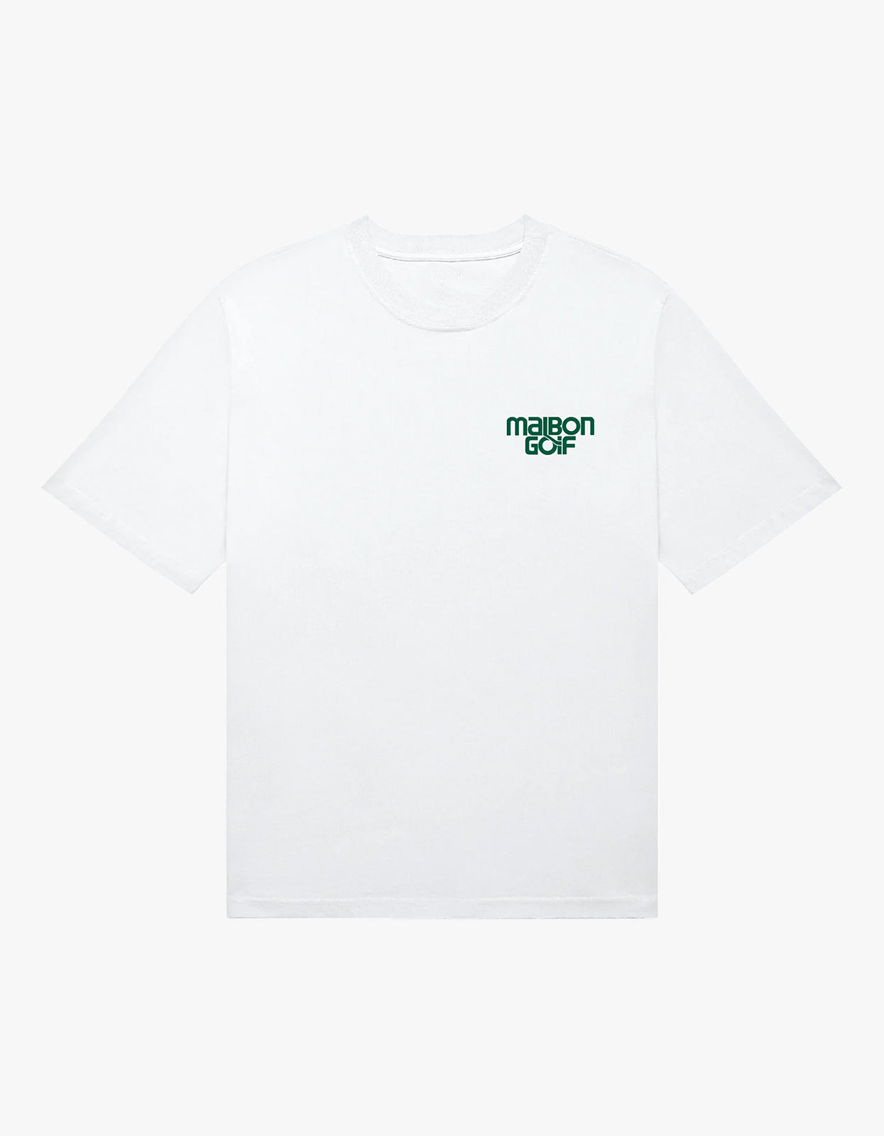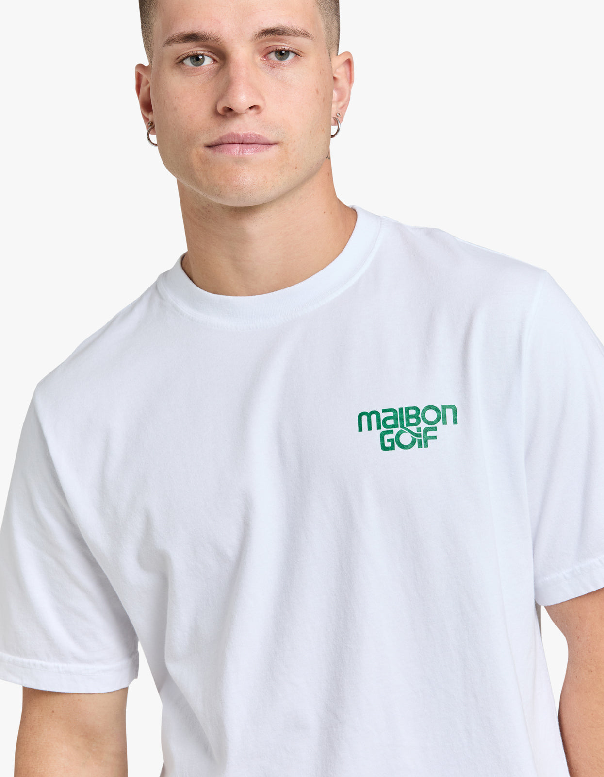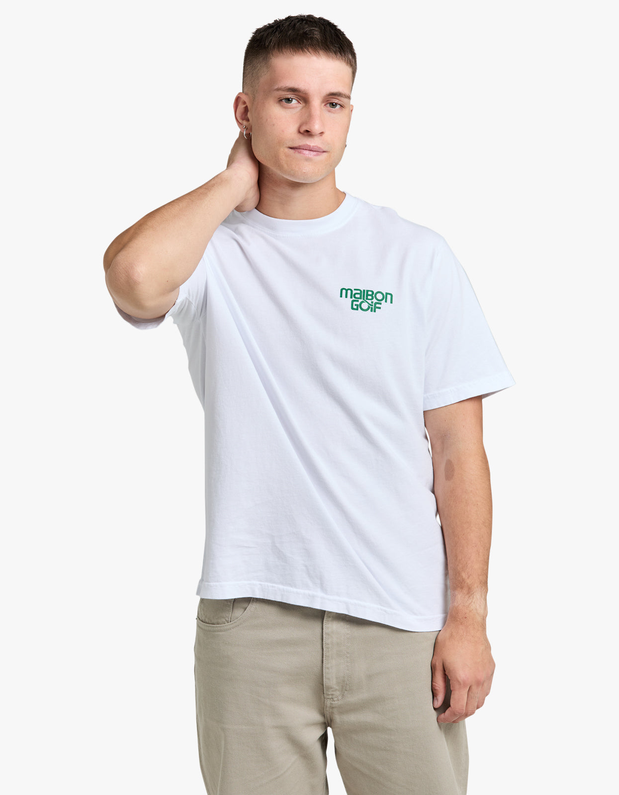 Indulge in luxury and elevate your golf attire with Malbon's swing oil short sleeve tee in white.
