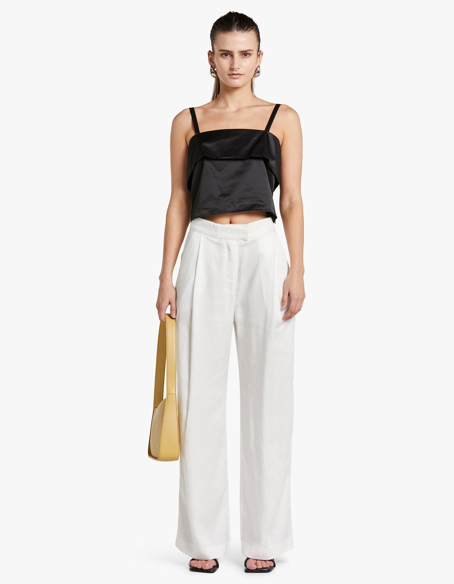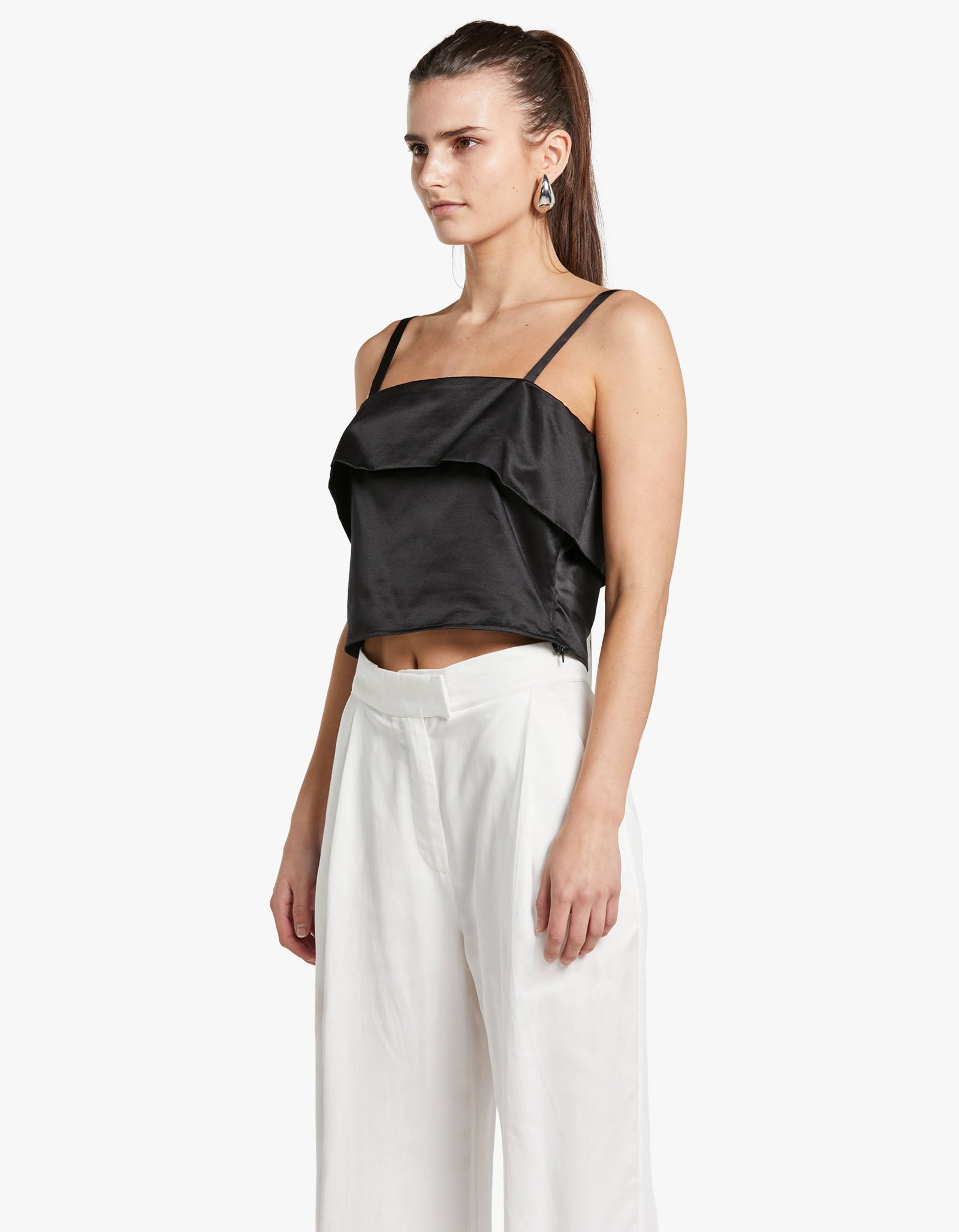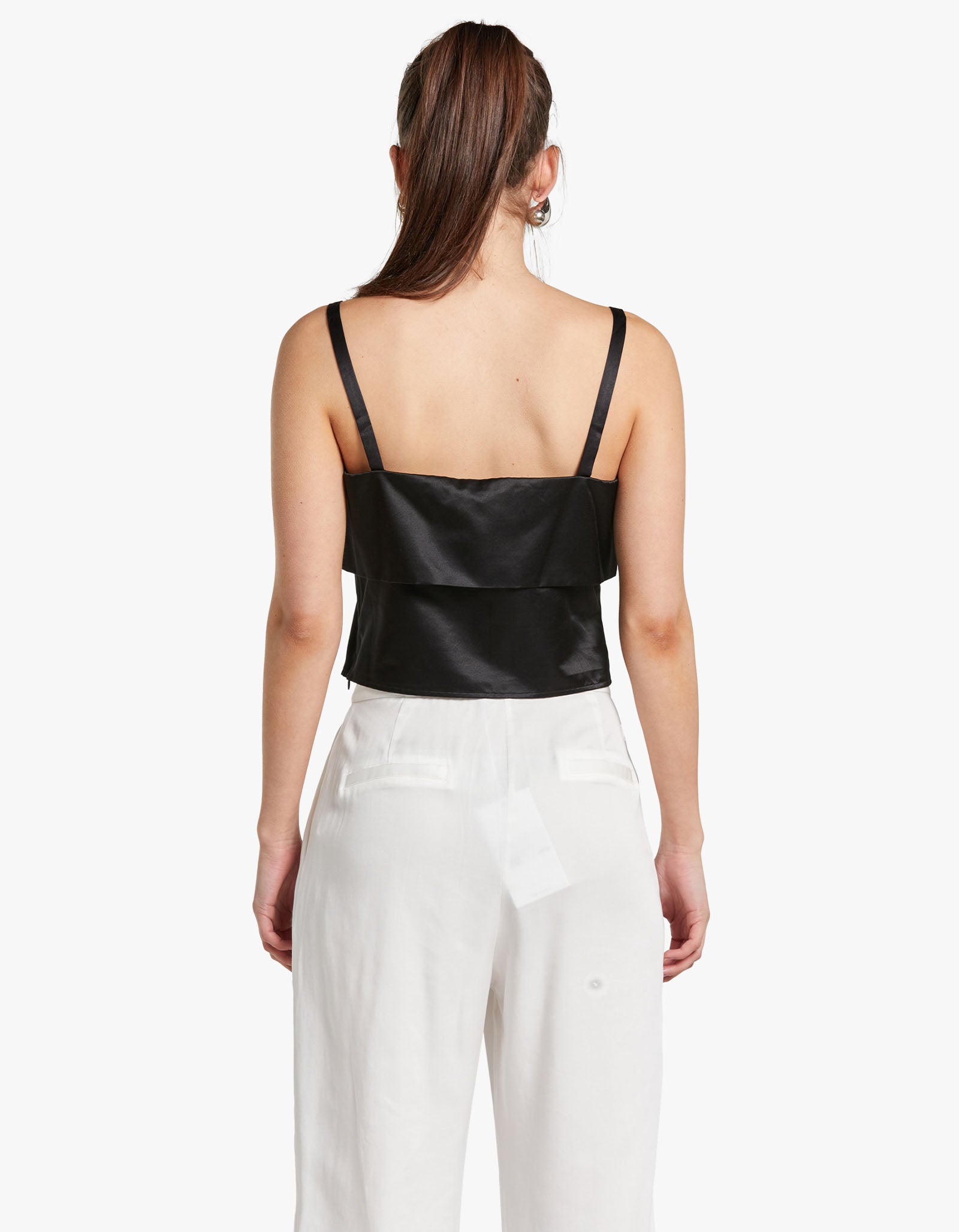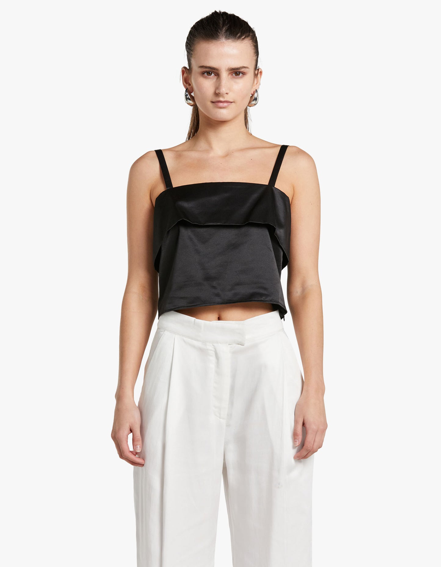 The Alma Top via Marle is crafted in a beautiful cotton, silk cloth finished with a subtle sheen - A cami style that has a wide, square neckline with thin straps and a layered detail across the top that falls at a flattering semi-cropped length.