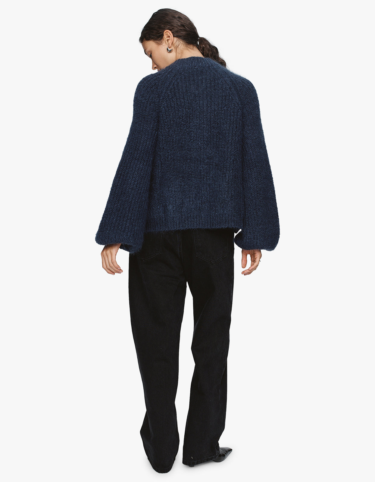 Embrace the comfort and sophistication of its fisherman rib knit and indulgent balloon sleeves. Perfect for making a statement and staying cosy on chilly days. Dress to impress in this luxurious piece.