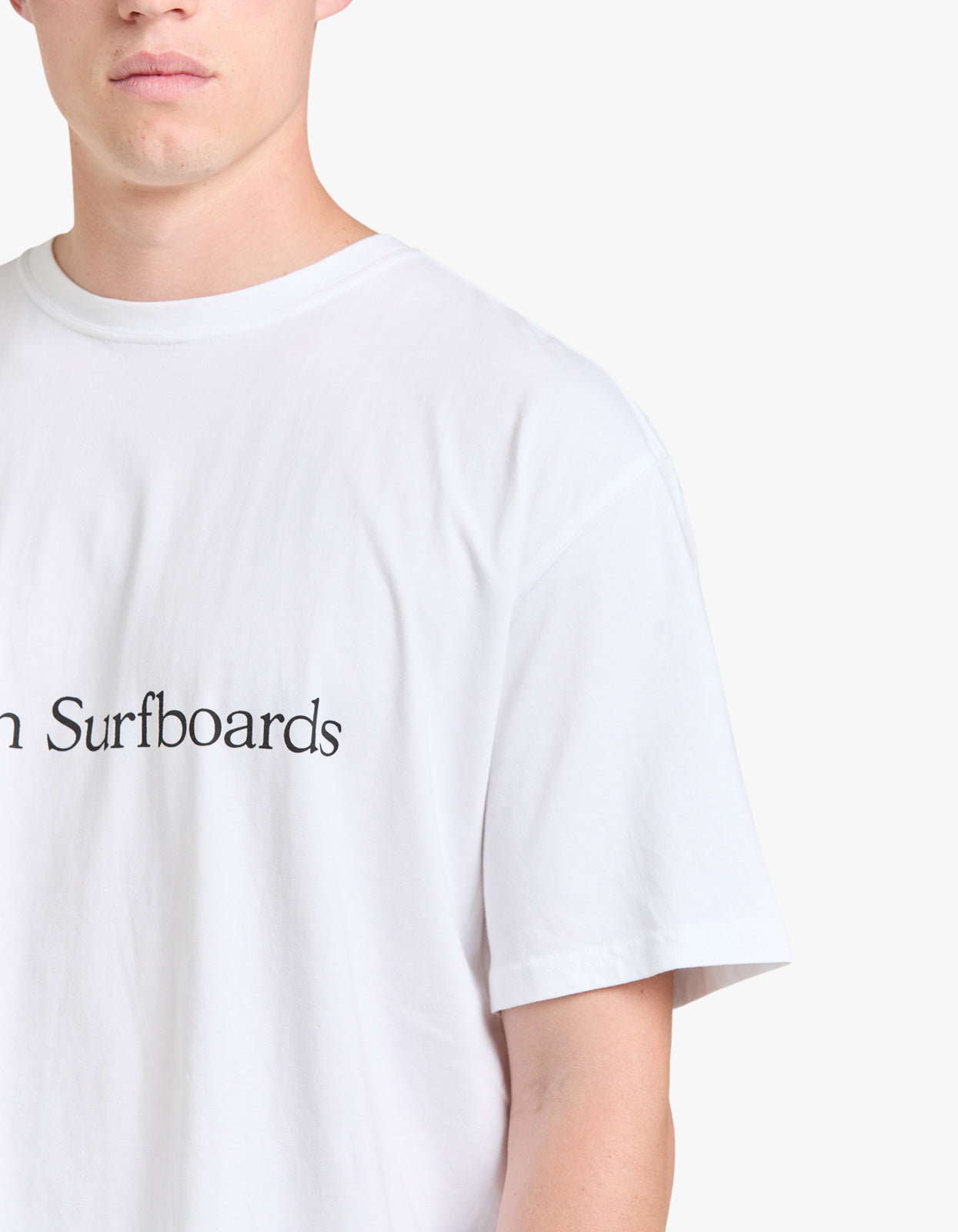 Crafted from premium organic cotton jersey, this boxy tee delivers substantial comfort with its relaxed, generous silhouette. The distinctive serif lettering spelling "Mctavish Surfboards" across the chest adds understated graphic appeal, making it a versatile layering piece that works equally well as a standalone statement. Built to last with quality construction and natural fibres.