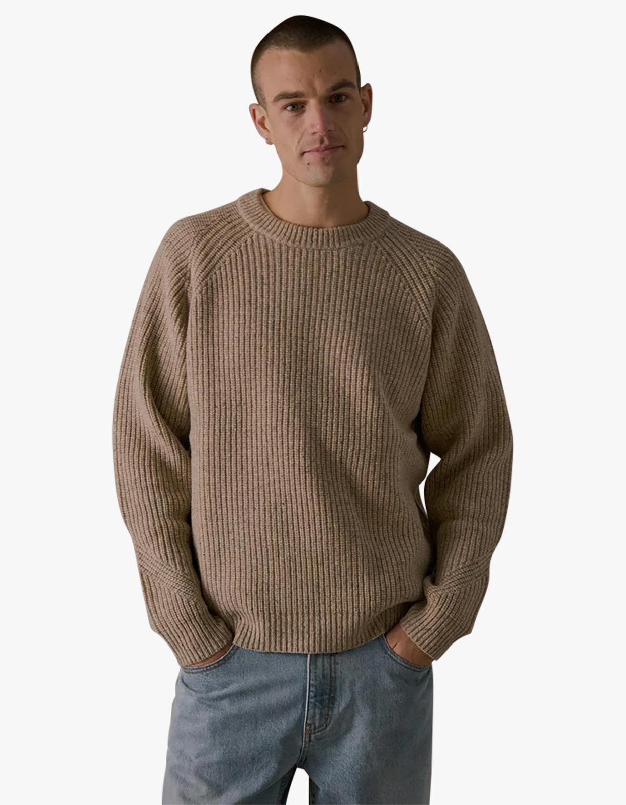Experience luxury and refinement with Mctavish's exclusive Fisherman Knit sweater in a timeless light tan color.
