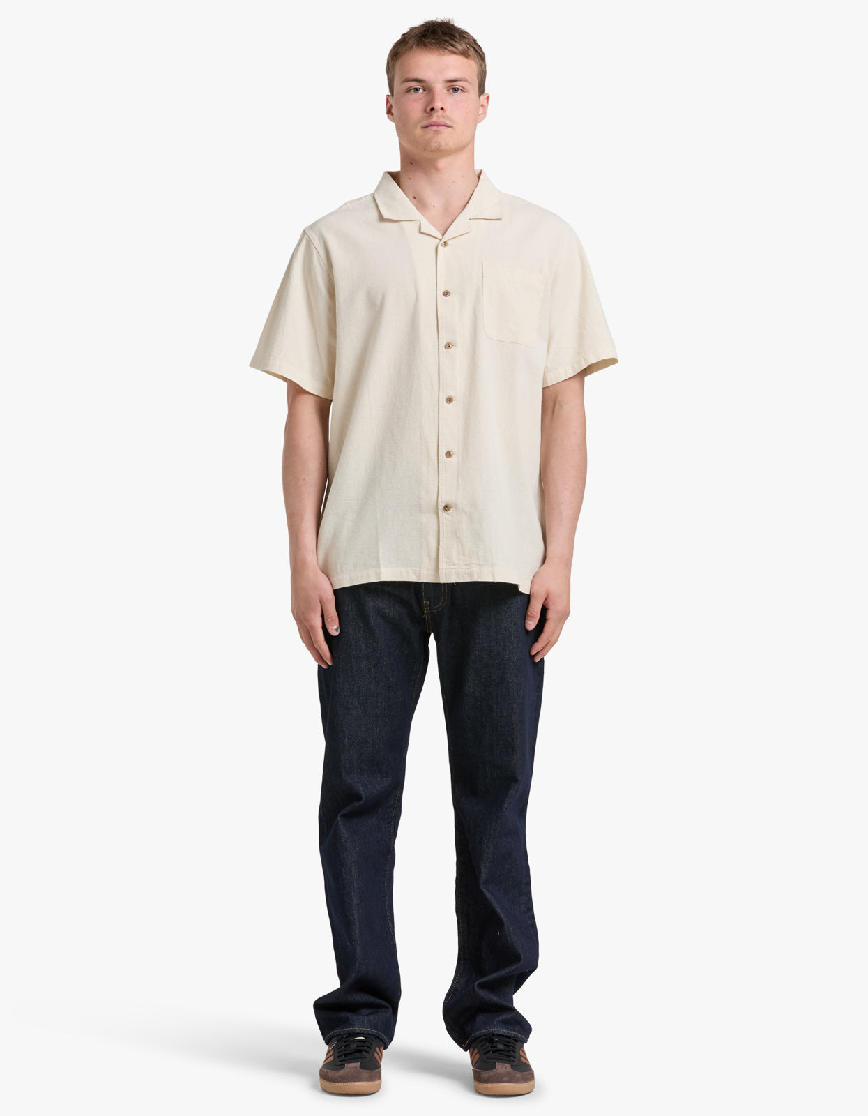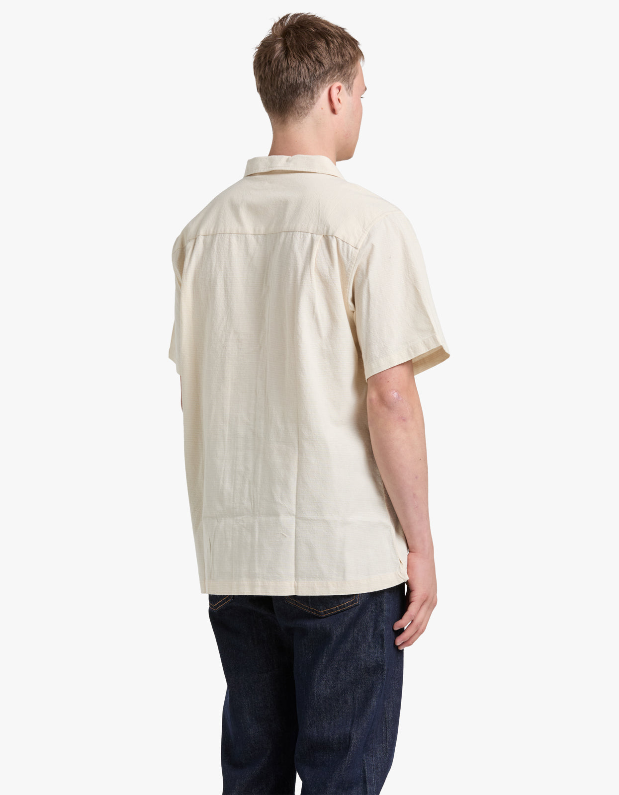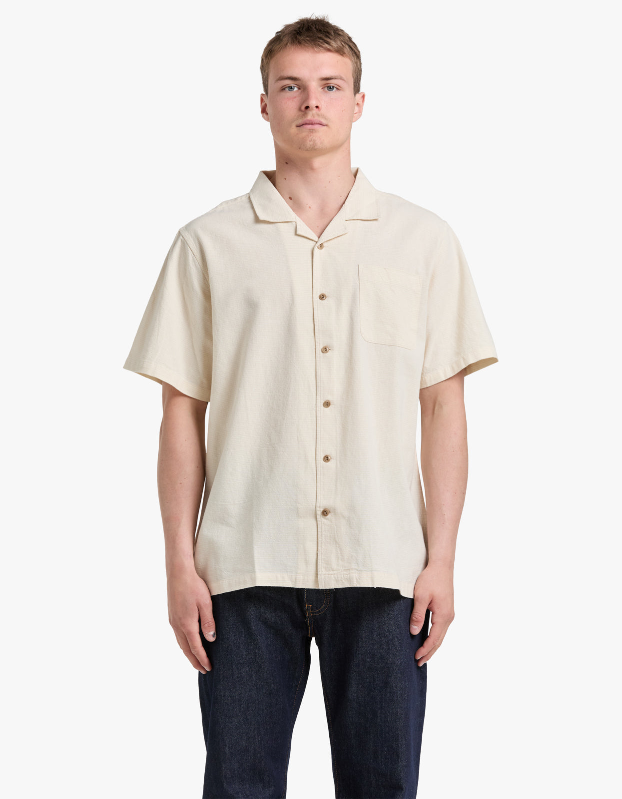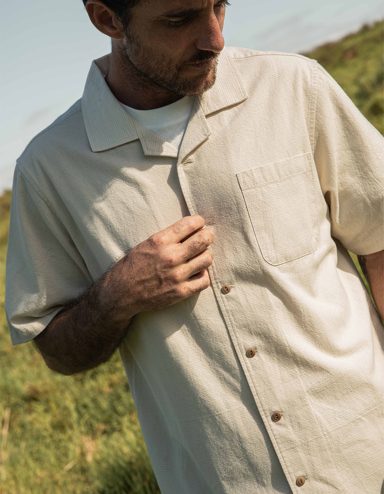Elevate your style with the Linen Camp Collar Shirt in Tan Multi from McTavish.