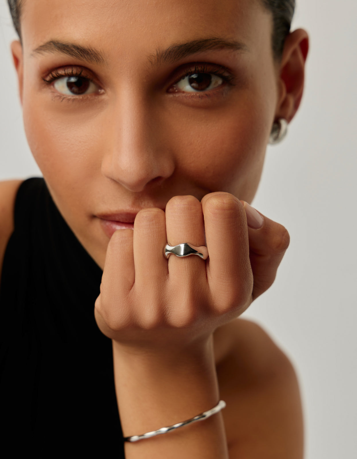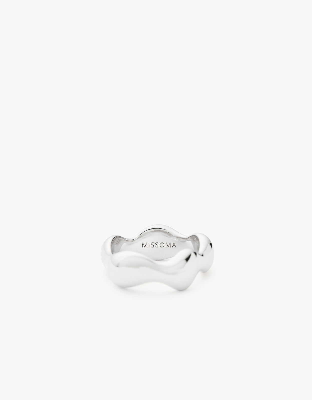 With a molten band design, this puffy ring captures the lightness of blown balloons. Perfect for everyday wear, or stack with pearls and delicate rings for a unique look. Elevate your style with this must-have silver stacking ring.