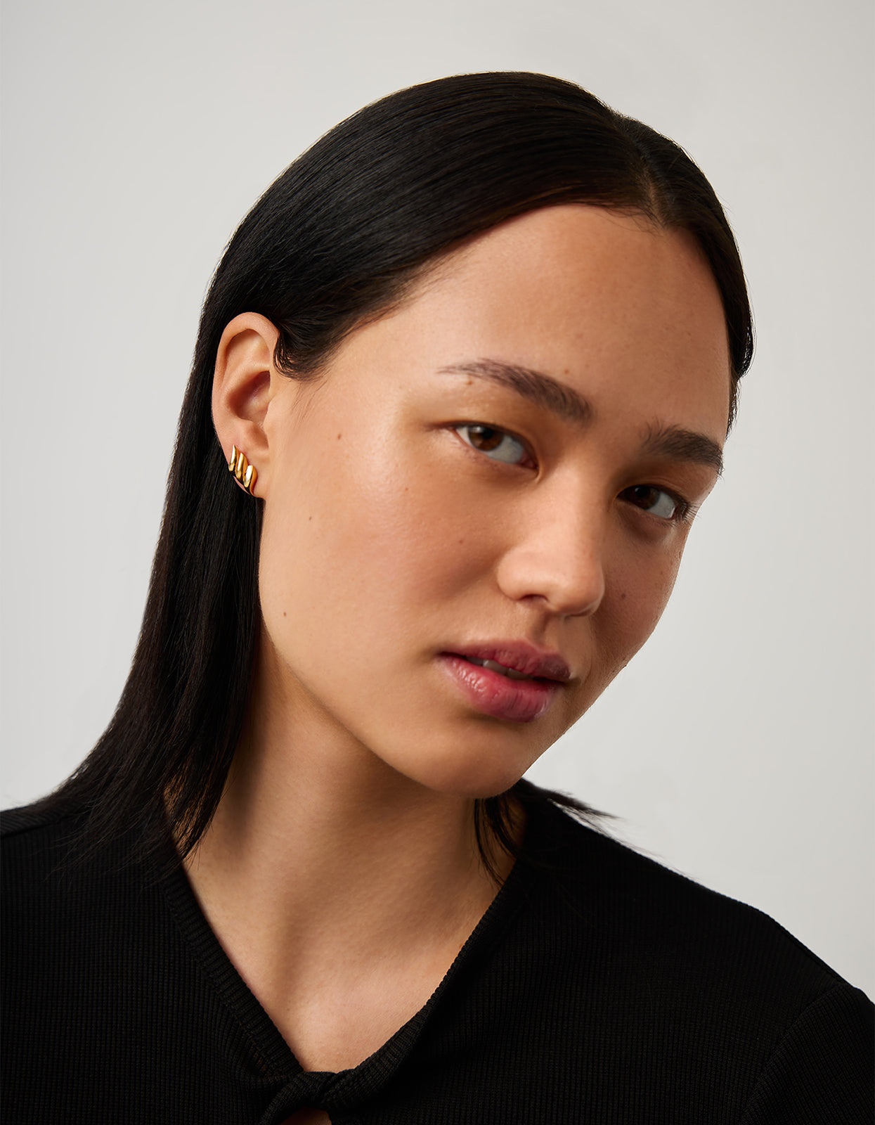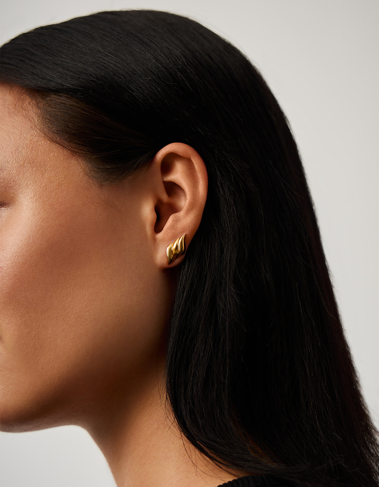 With organic small triple ridge detailing, these earrings are the perfect statement piece or can be styled for a unique ear stack look. The high shine finish adds a touch of luxury to any outfit.