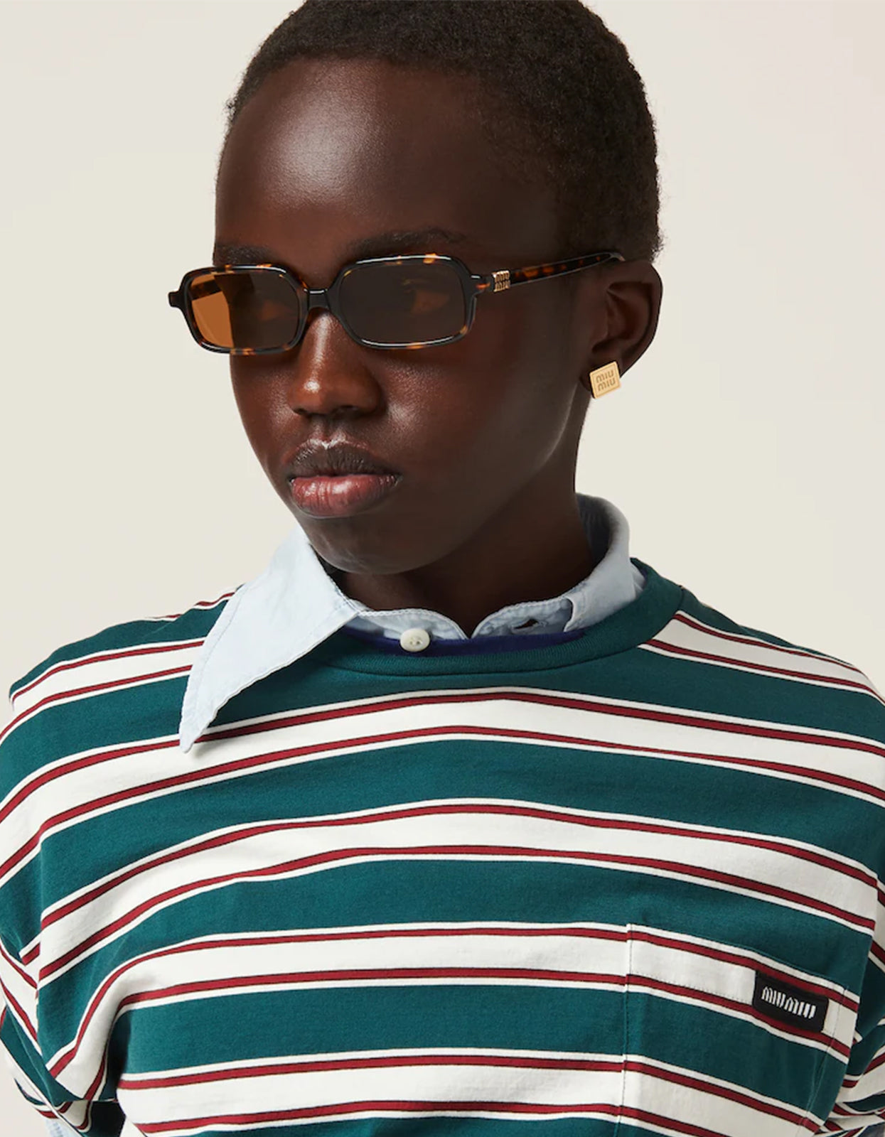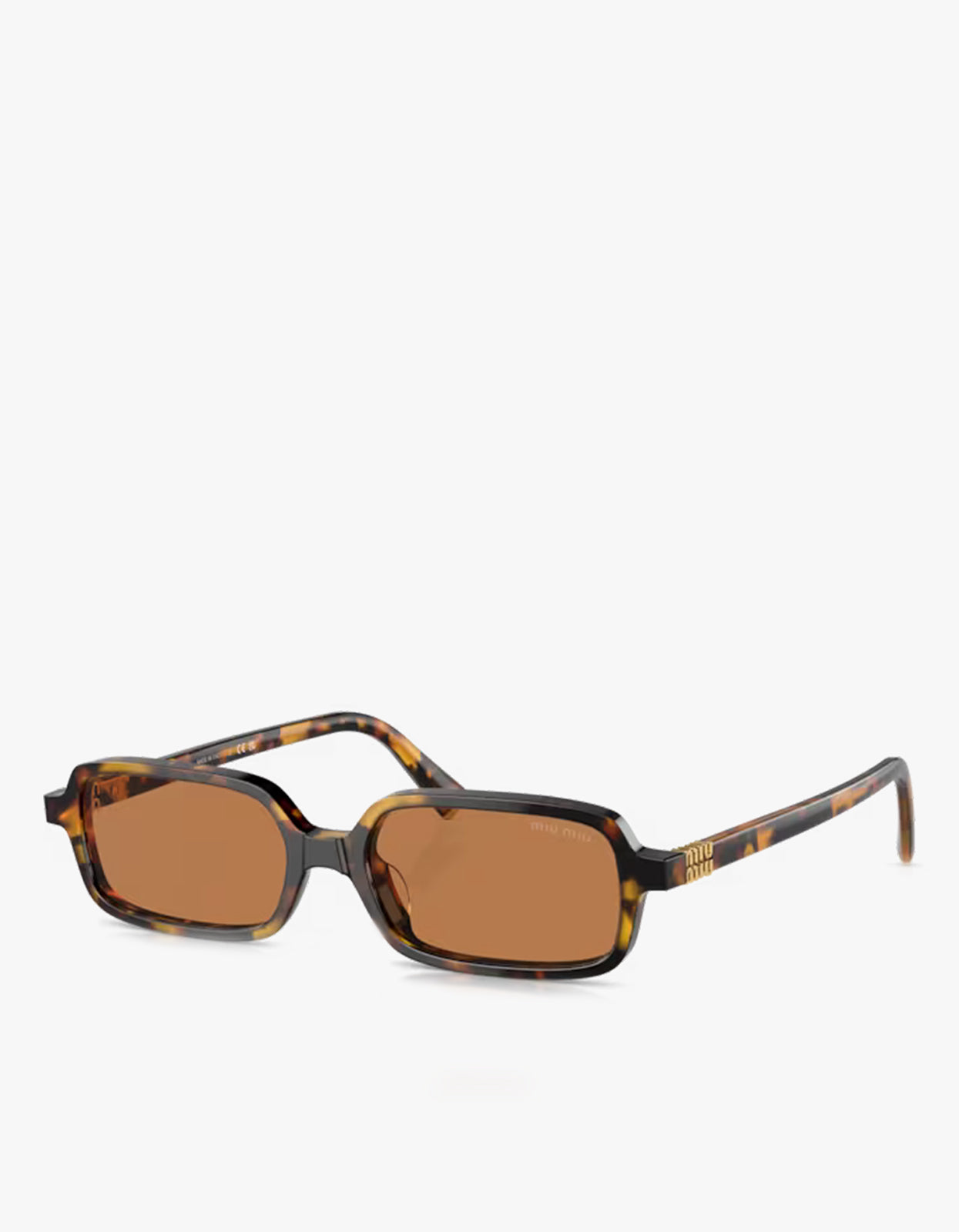 • Gold Miu Miu branding on temples
