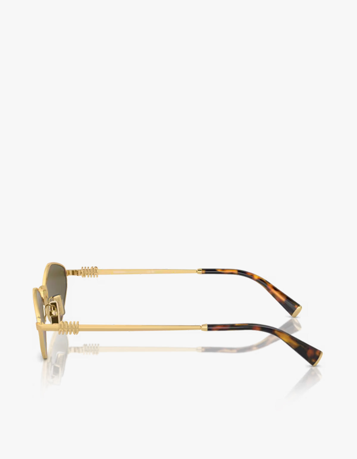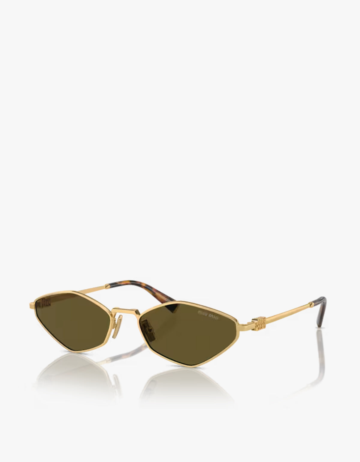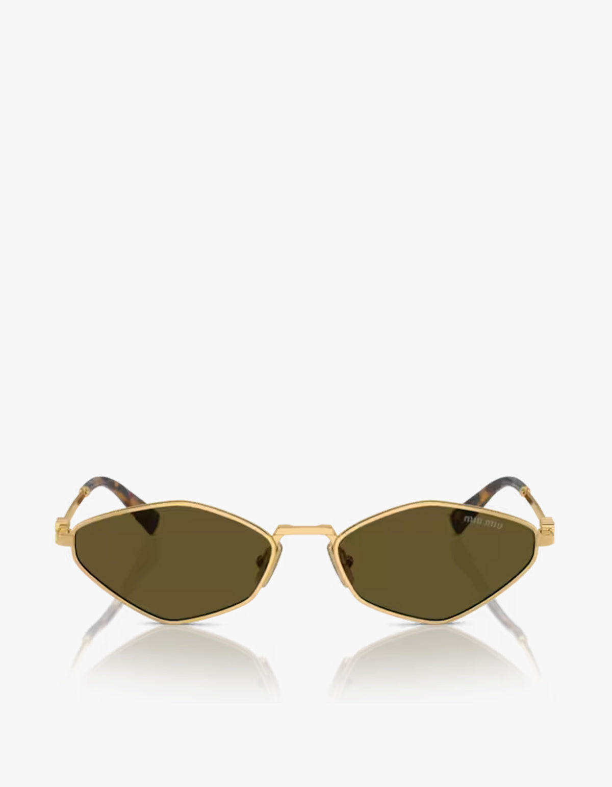 - Gold metal Miu Miu logo at temples