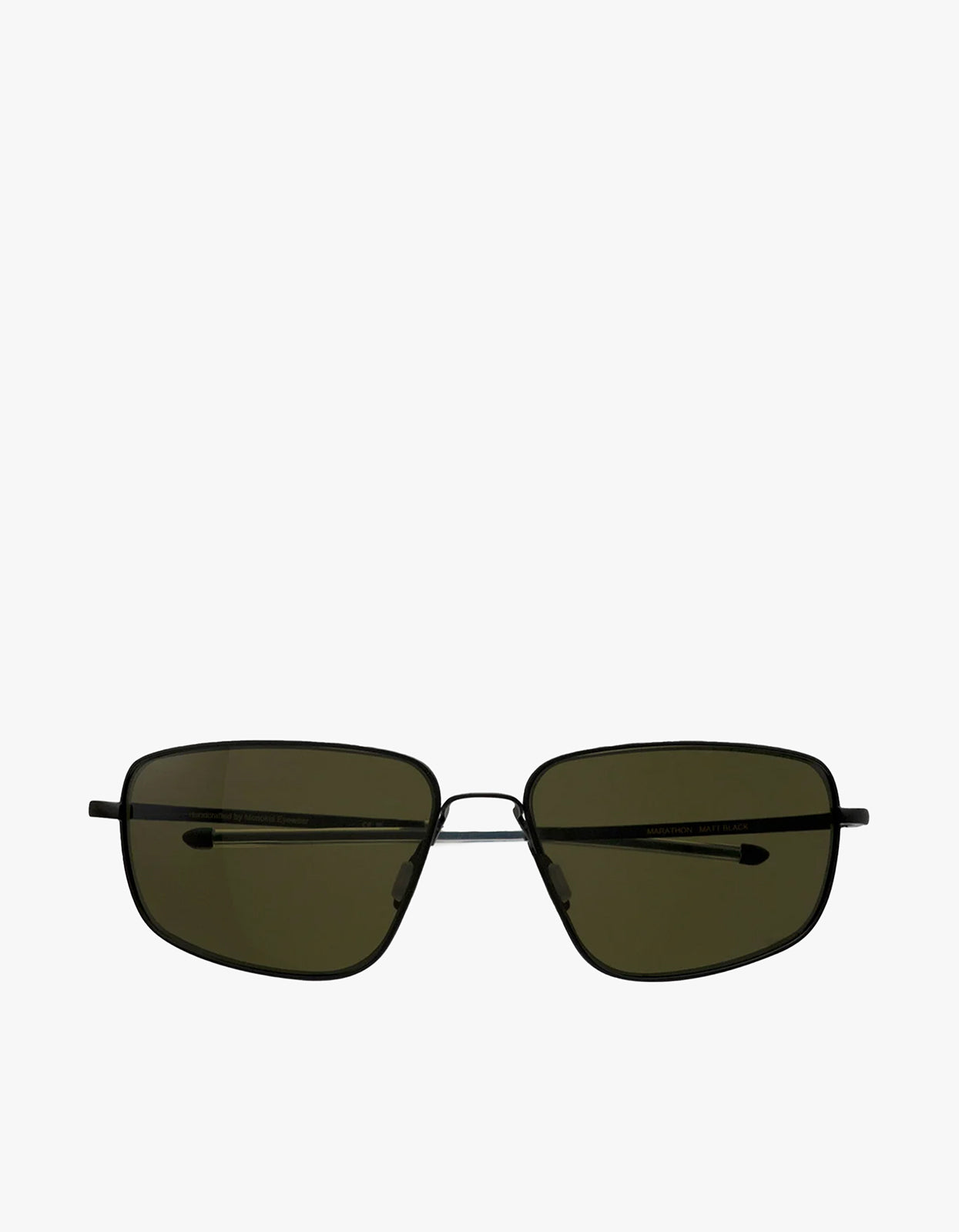 Marathon Sunglasses - Black/Green Solid Polarized Lenses