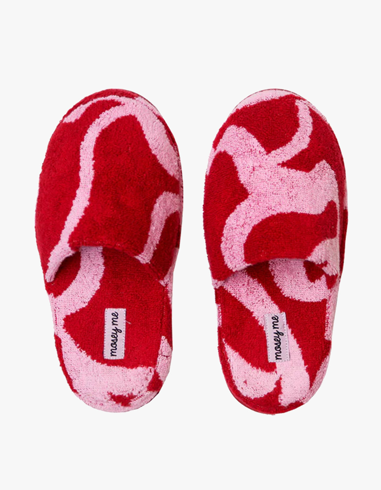 Introducing the Ribbon Terry Slippers in Pink by Mosey Me.