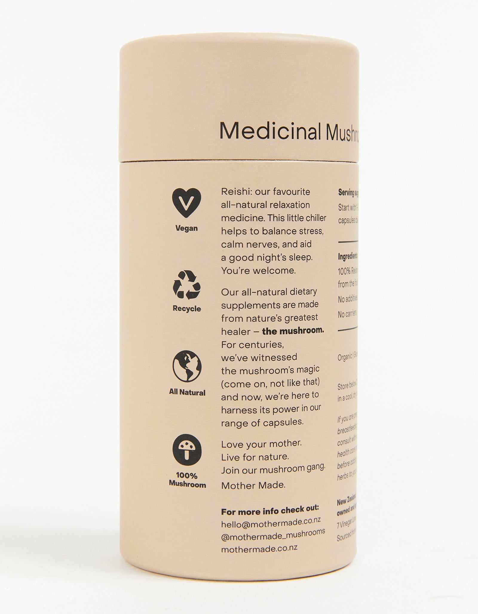 Take a chill pill with the new Relax Mushroom Capsules from Mother Made. 100% Reishi which helps with stress and anxious minds. Keep calm and clear that busy mind with these beauties.