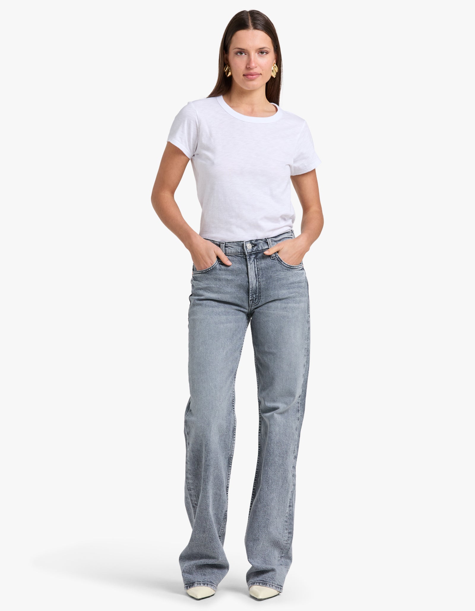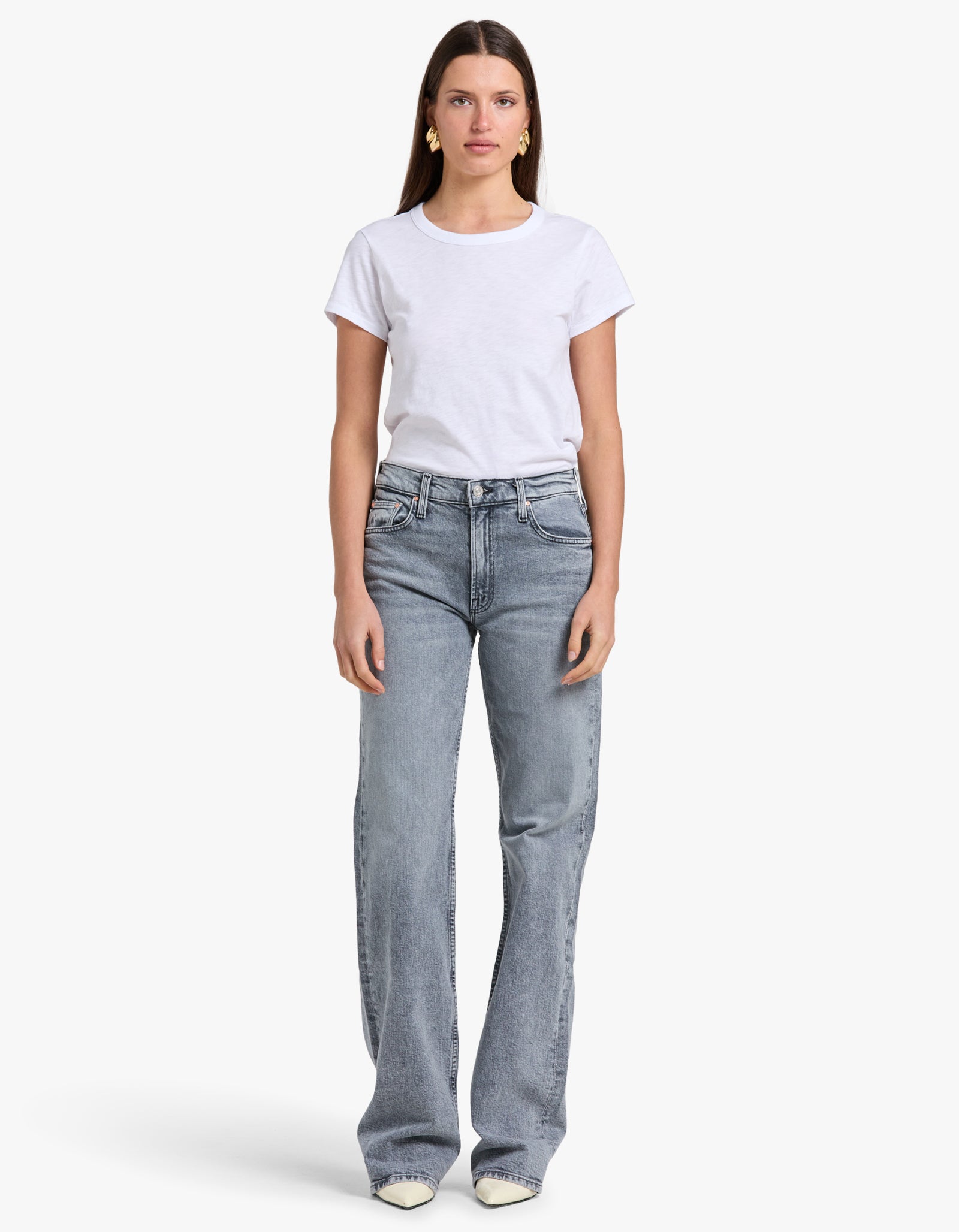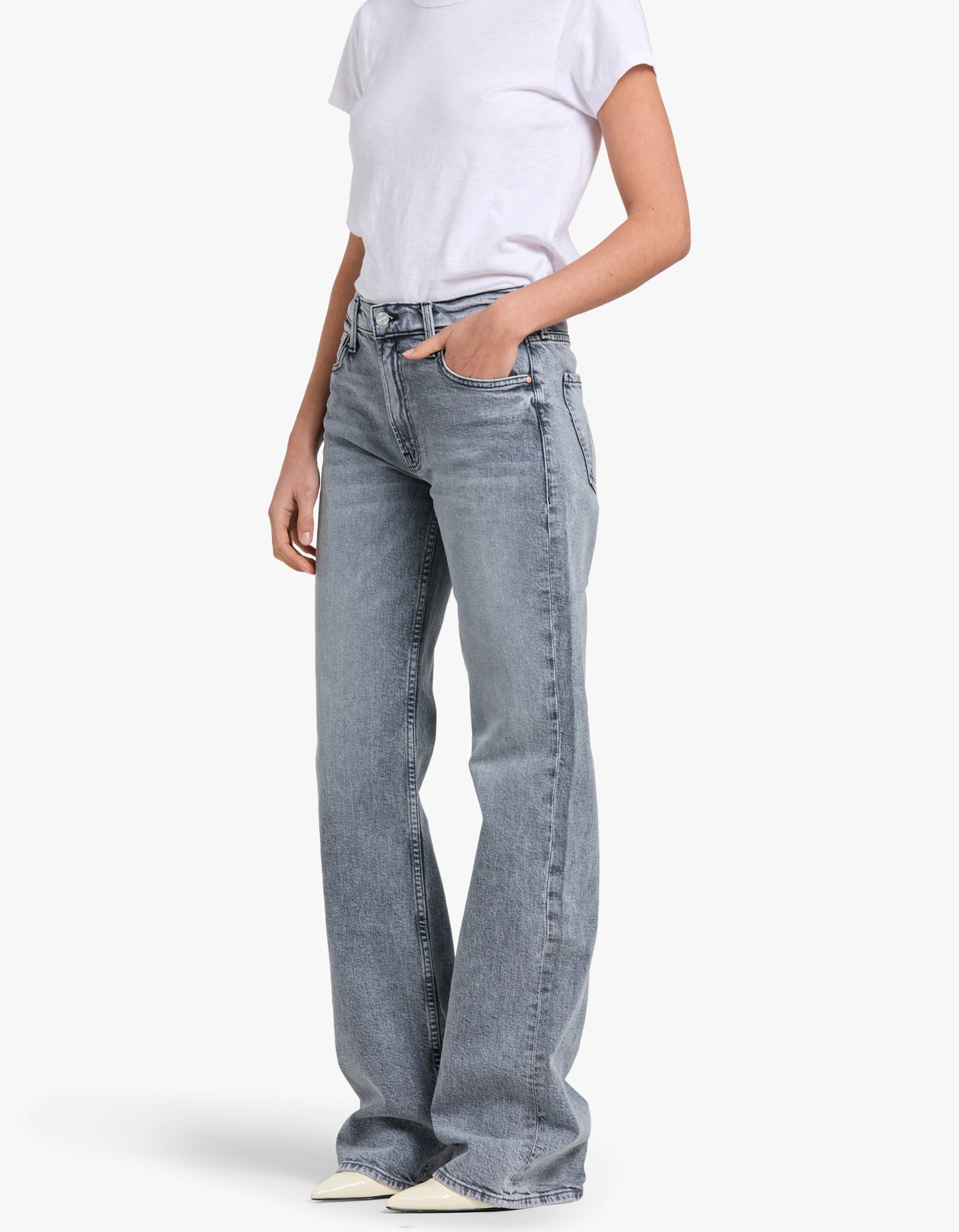 Discover the allure of "The Bookie Heel - Drawing A Blank" high-waisted jeans from Mother, redefining modern elegance with their relaxed wait design.