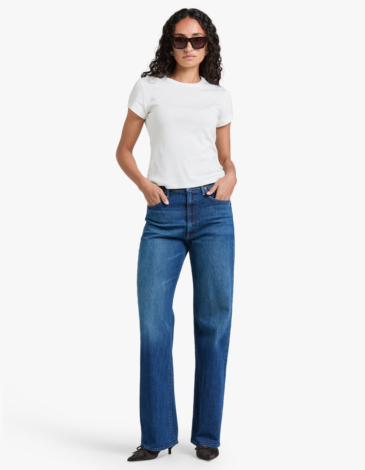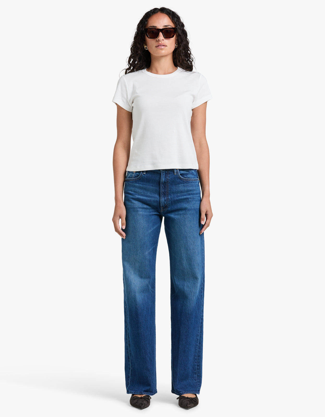 Elevate your denim game with the perfect wash for warmer weather. This high-rise wide leg pant can be dressed up or down, making it a versatile must-have for any wardrobe. Channel sophistication and exclusivity with this stylish piece.