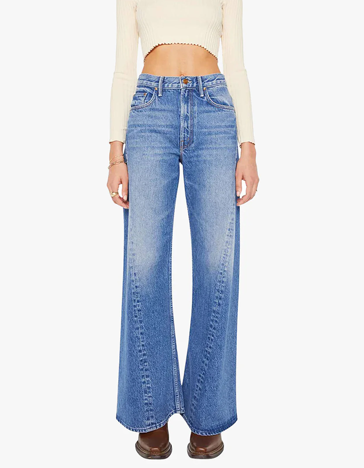 Elevate your wardrobe with these playful high-waisted wide-leg jeans from Mother.
