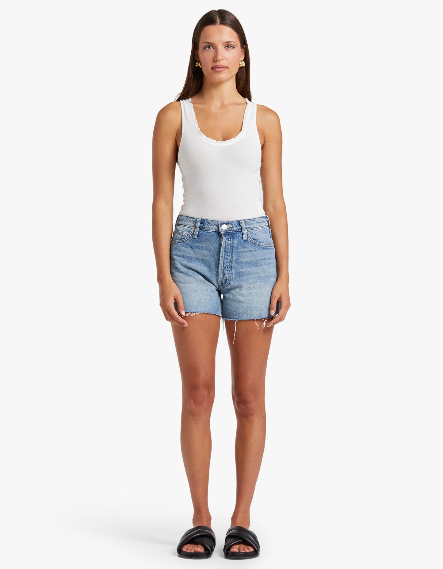 The latest from MOTHER - The Skipper Short And Long Fray is a vintage-inspired design cut from a 100% cotton base. Complete with a high-rise, branded patch pockets ash the back and frayed detailing at the hem, simply wear with a white tank and chunky slides for an effortless yet elevated day-ready fit.