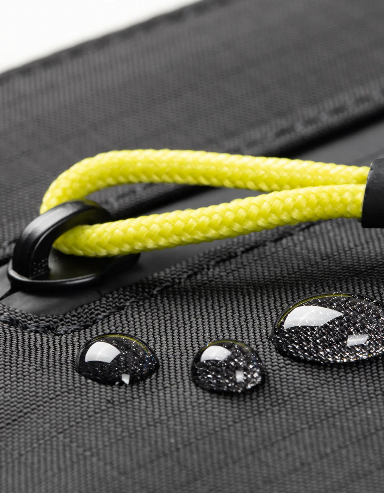 Crafted from 100% recycled water-resistant ripstop fabric, it combines a modern minimalist finish with durable everyday protection. A padded, form-fitting interior shields against bumps and scratches, while a quick-access pocket keeps your essentials close at hand. Finished with bold contrasting cord zipper pulls, it’s a sleek, functional piece made better for the planet.
