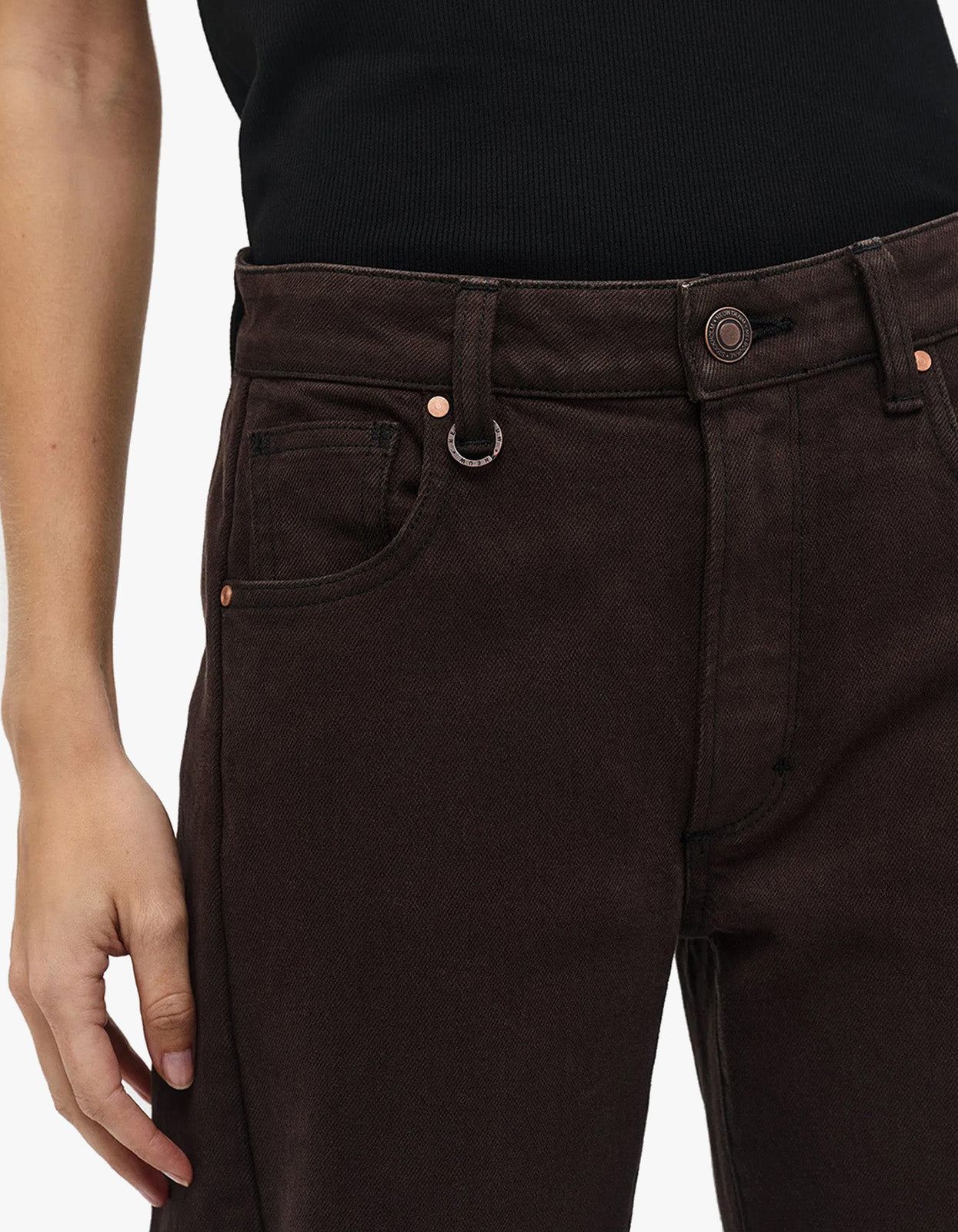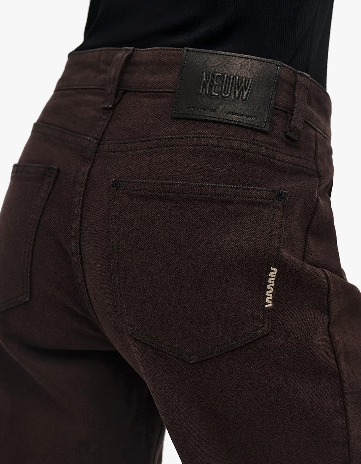 The Amber Barrel is Neuw Denim's newest fit, and it's destined to become your go-to. This mid-rise slim fit barrel leg jean sits perfectly at the ankle and features clever side panels that create a flattering bow silhouette when worn. Crafted in Sable—a seasonal rich brown shade—with subtle stretch denim that molds to your body for comfort while maintaining that authentic rigid denim look and feel. Whether you're pairing them with casual sneakers or refined footwear, the Amber Barrel is the versatile piece that dresses up or down with ease.